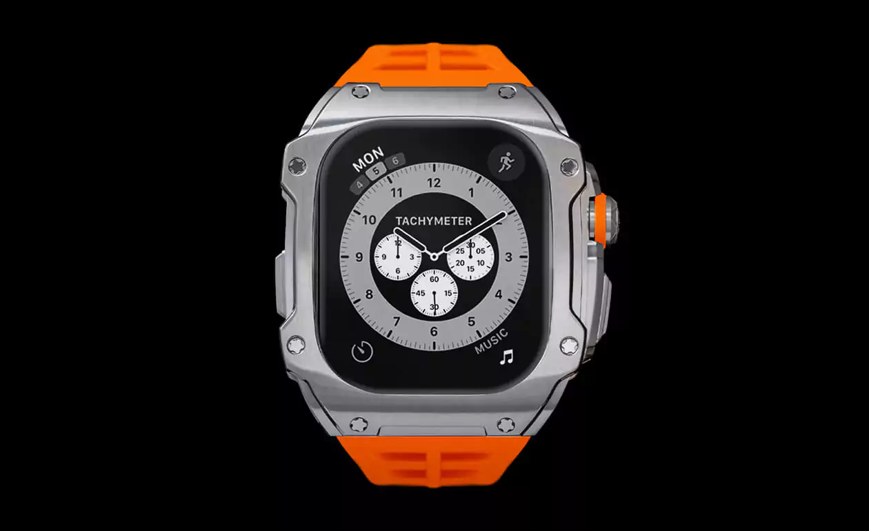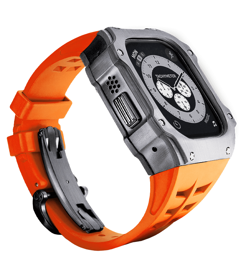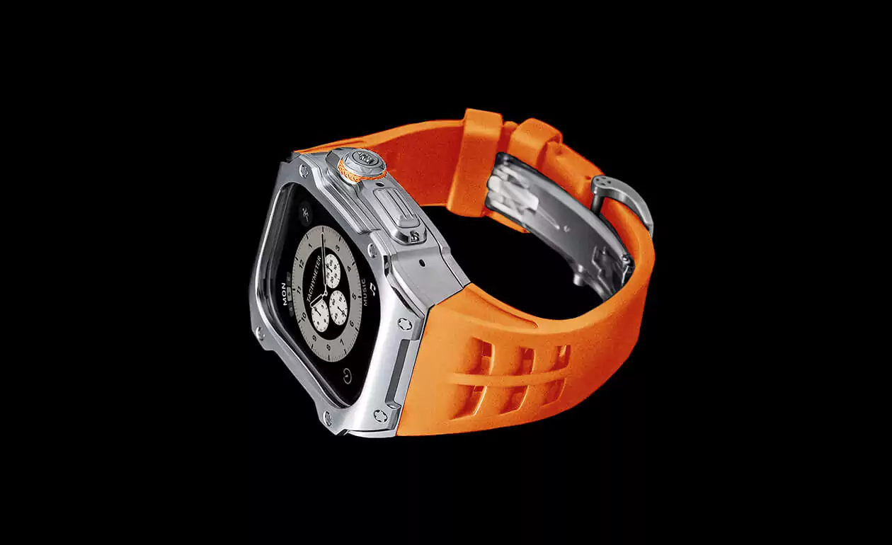 Скорость и динамика в инновационном дизайне, созданном для чемпионов. Caviar представил брутальный кейс для Apple Watch, который идеально подходит для интенсивных тренировок и преображает ваши часы. Стальной корпус Airspace Orange в сочетании с каучуковым браслетом и двойной раскладывающейся застежкой обеспечивает надёжную защиту и комфорт во время занятий спортом. Airspace Orange — это не просто кейс, а воплощение роскоши и силы, предназначенное для тех, кто стремится к победе.