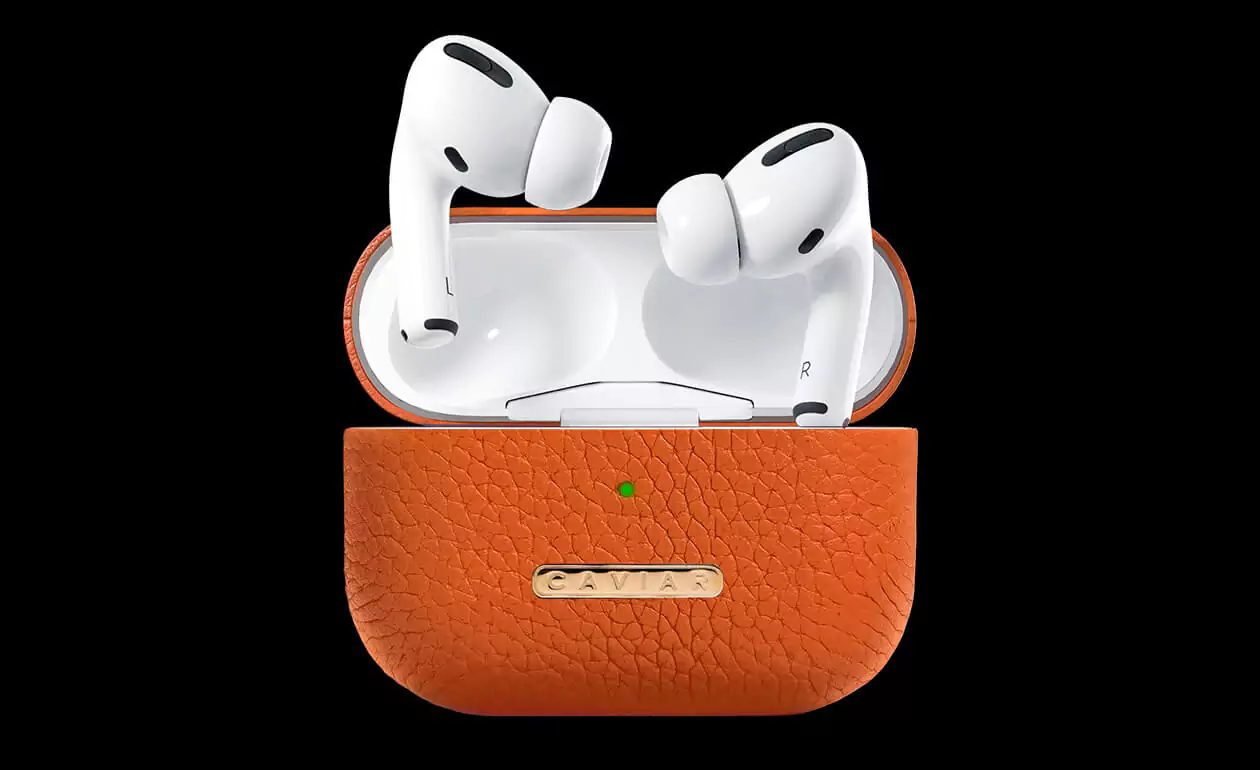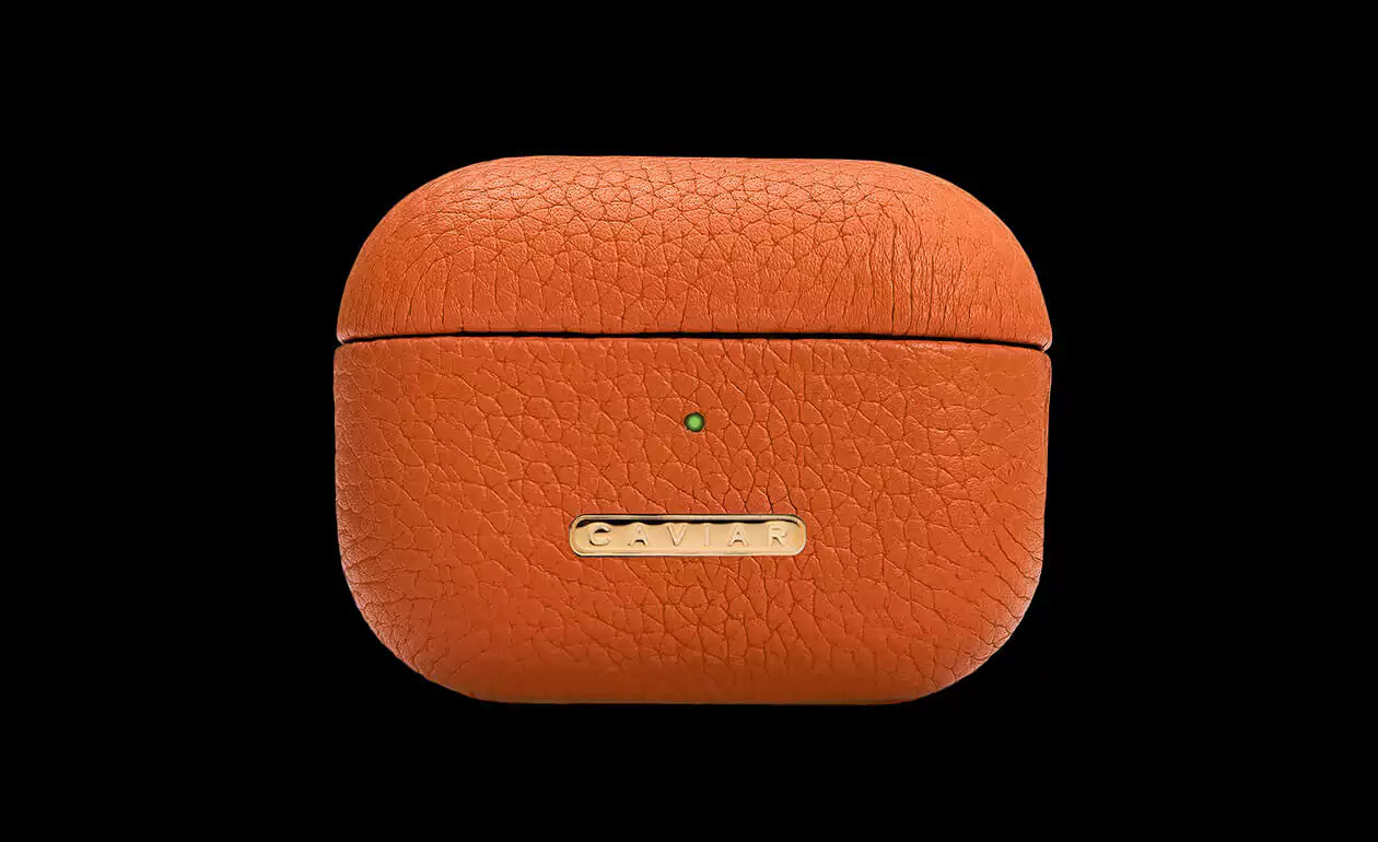 Корпус выполнен из кожи Hermes Epsom в насыщенном оранжевом цвете и украшен табличкой Caviar. Наушники цвета сочных цитрусовых универсальны и притягательны: выглядят дорого, уместны любой обстановке, подчеркивают статус владельца.