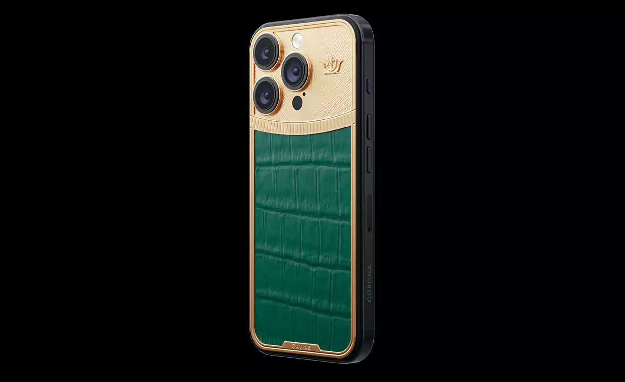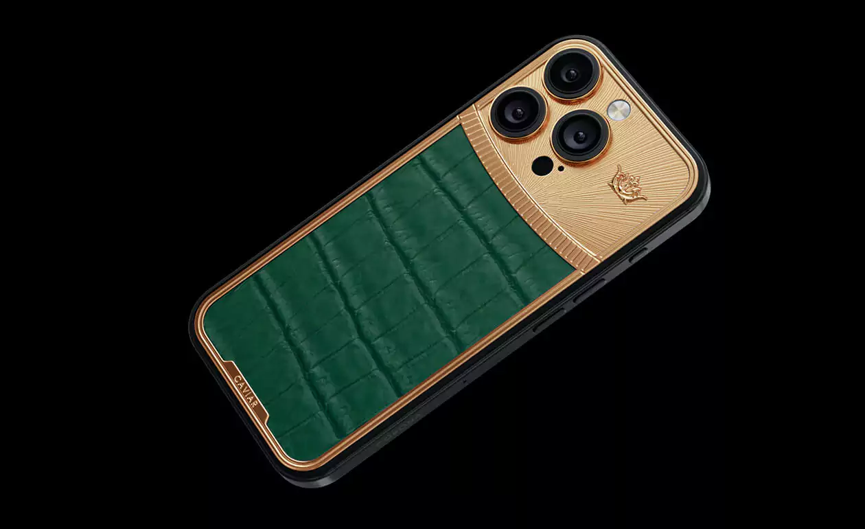 Натуральная кожа: Корпус устройства обтянут крокодиловой кожей в зеленом цвете.
