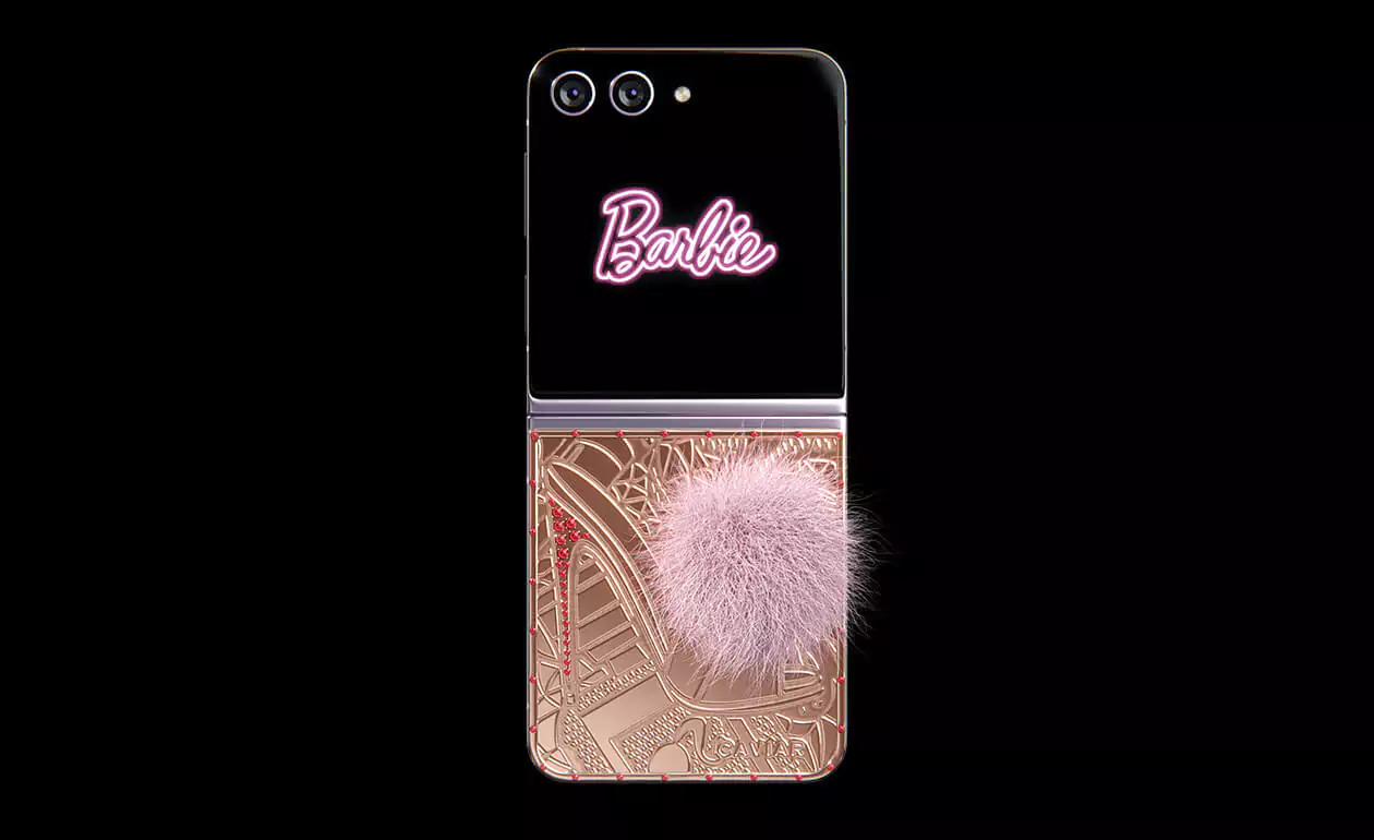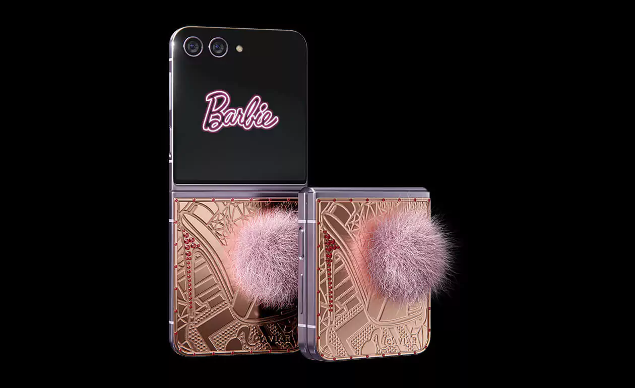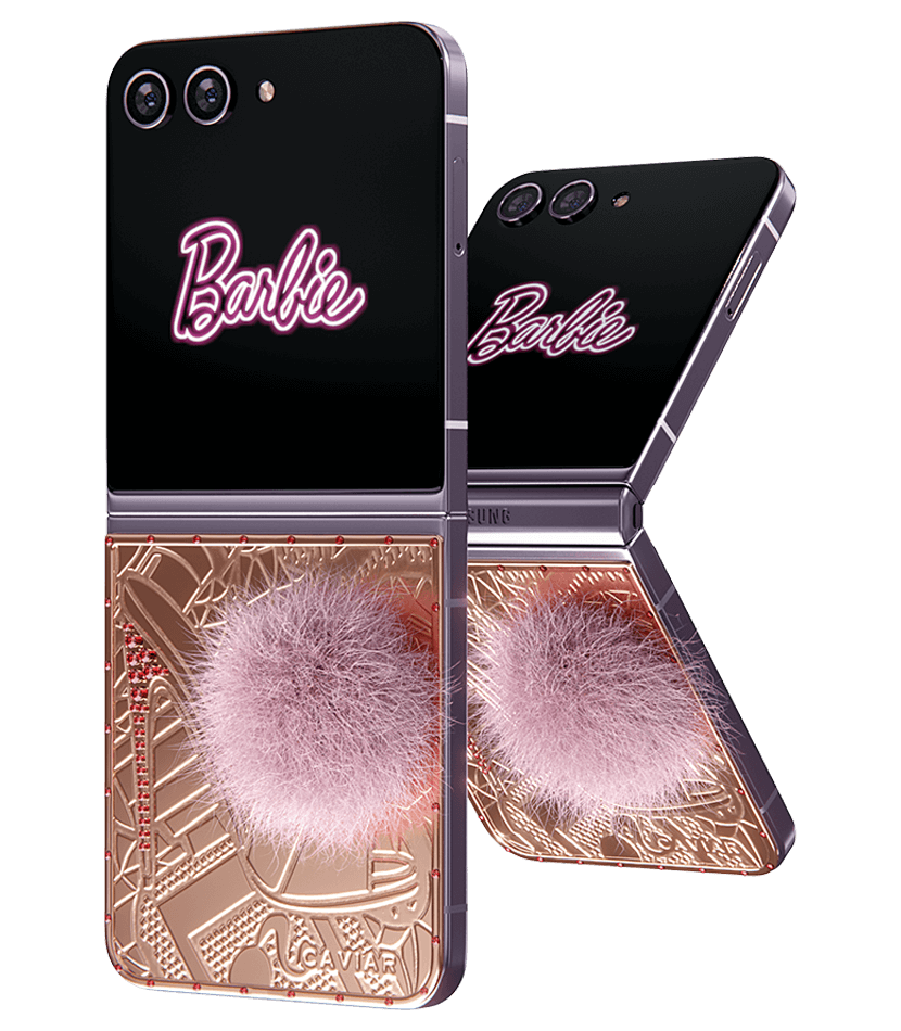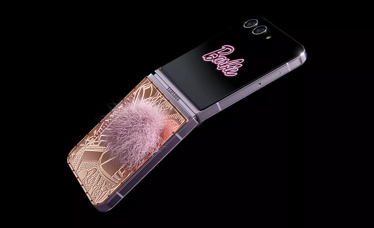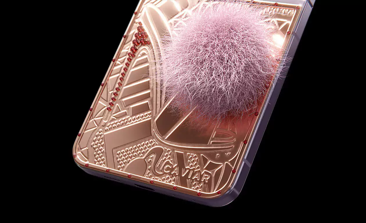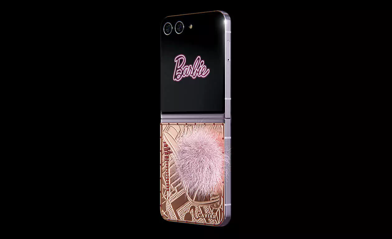 Caviar превратил Samsung Flip 5 в пушистого кролика. Glam Vibes – это дорогая игрушка, воплощающая утонченность и игривость. Покрытый чистейшим 24-каратным золотом, девайс удивит вас уникальными гравировками. Хвостик из кроличьего меха в нежном розовом оттенке добавит вашему образу гламурное обаяние. Позвольте своей внутренней Барби сиять, когда вы окунетесь в мир золотого волшебства и насмешливой роскошной атмосферы.