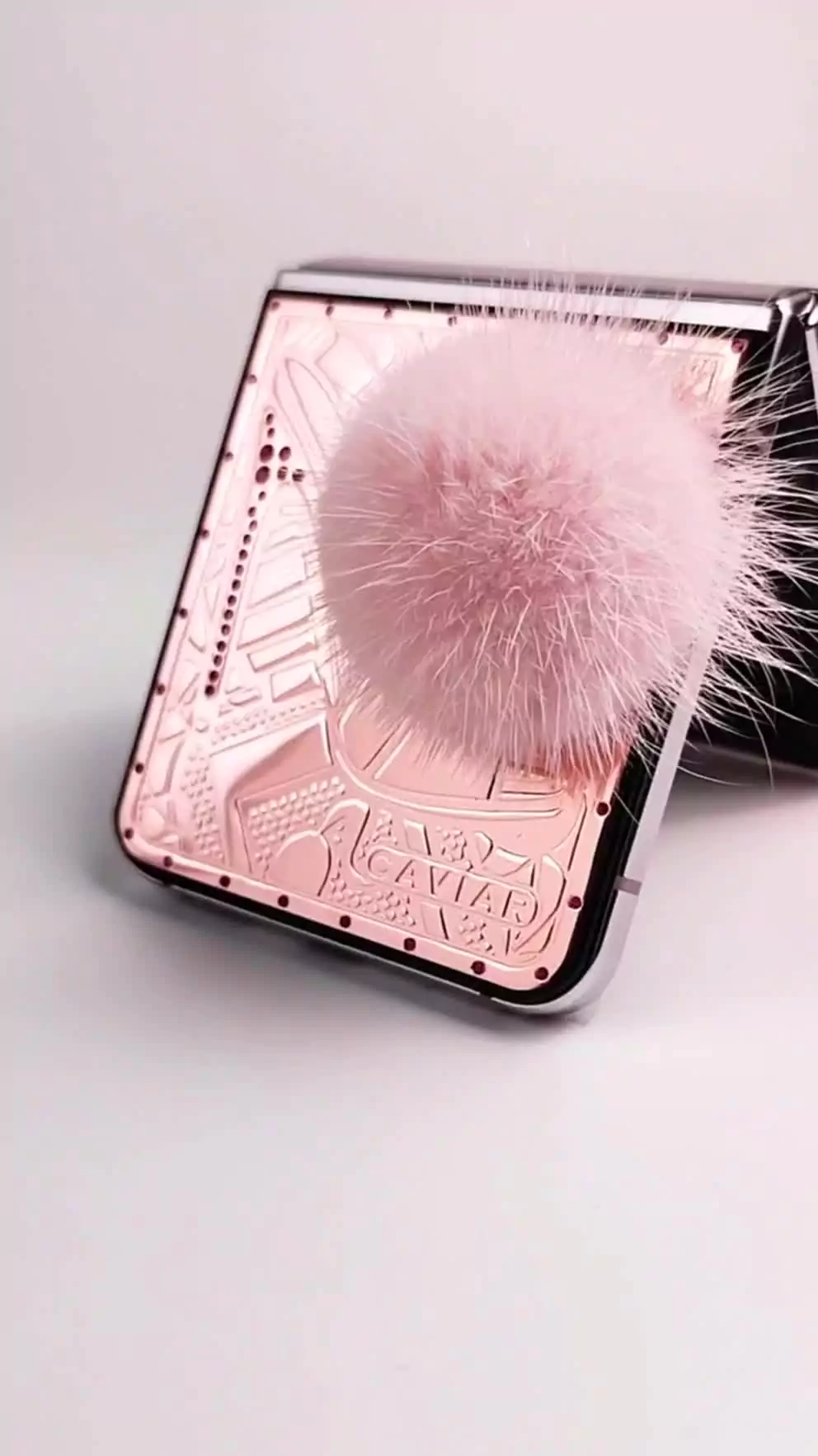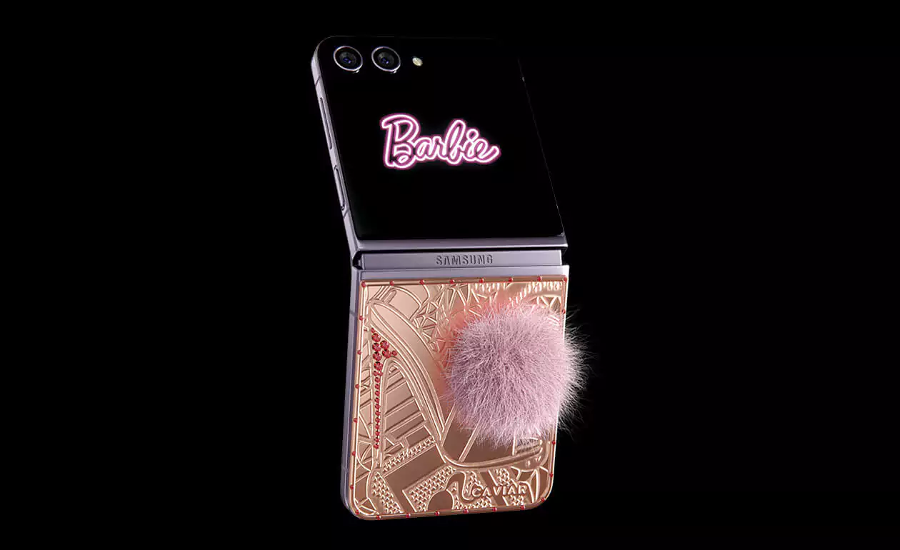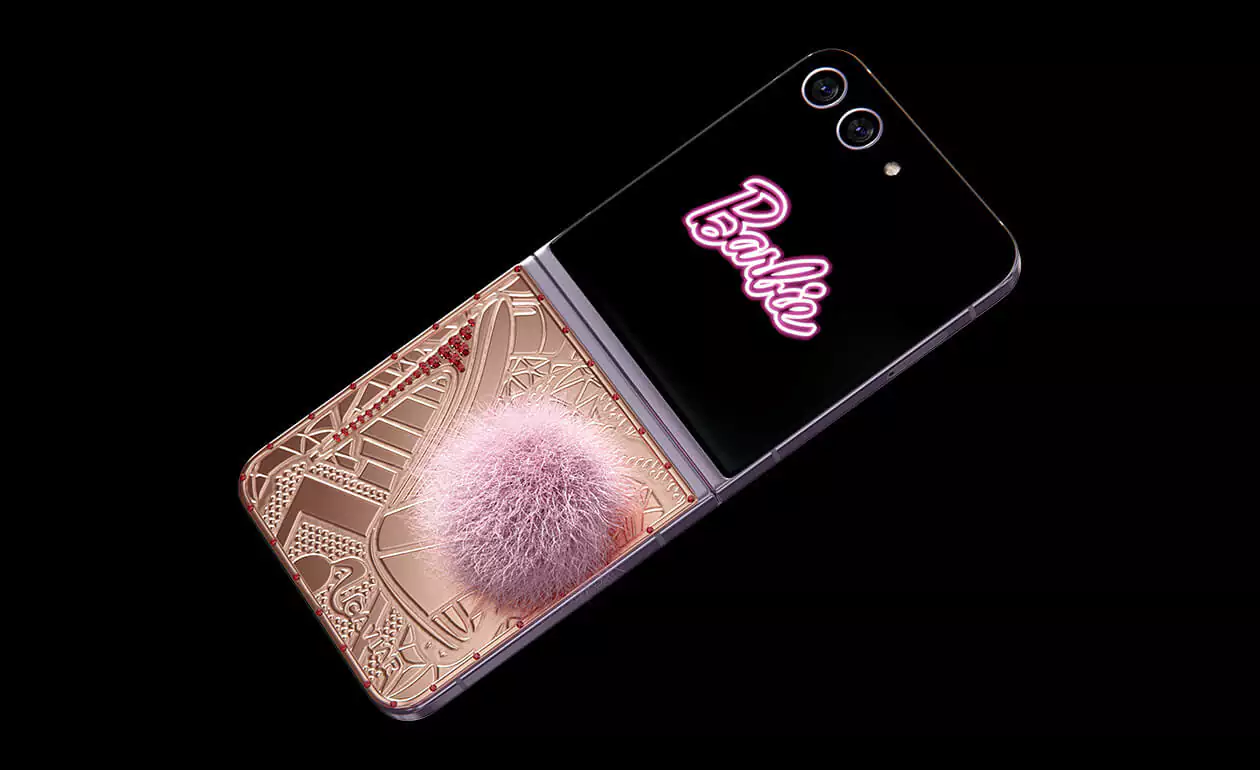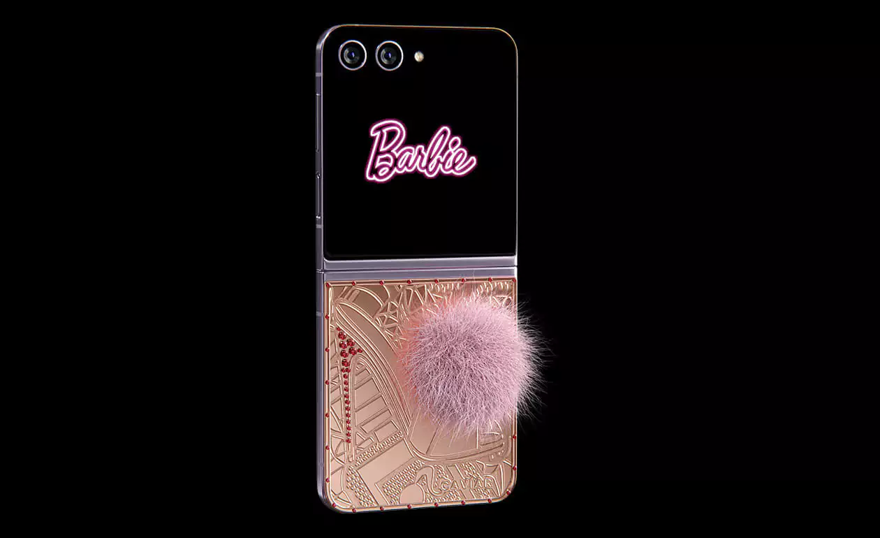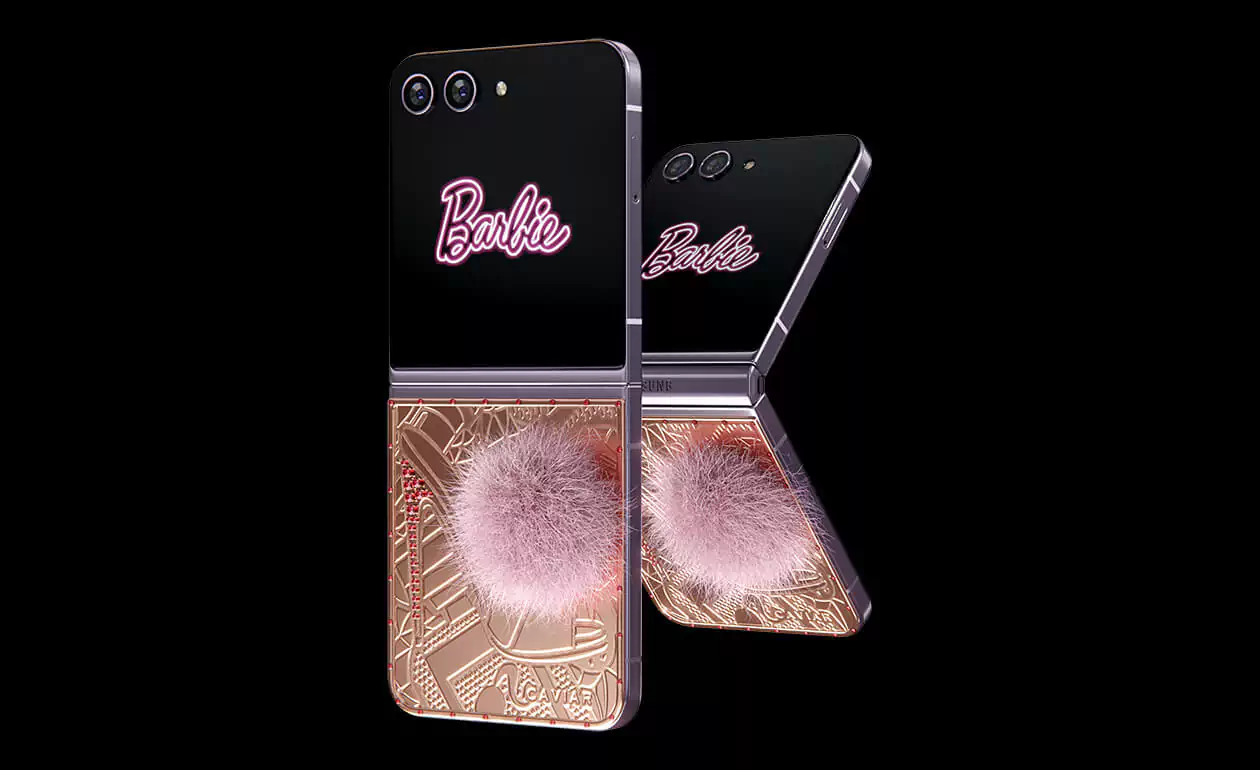 Caviar превратил Samsung Flip 5 в пушистого кролика. Glam Vibes – это дорогая игрушка, воплощающая утонченность и игривость. Покрытый чистейшим 24-каратным золотом, девайс удивит вас уникальными гравировками. Хвостик из кроличьего меха в нежном розовом оттенке добавит вашему образу гламурное обаяние. Позвольте своей внутренней Барби сиять, когда вы окунетесь в мир золотого волшебства и насмешливой роскошной атмосферы.