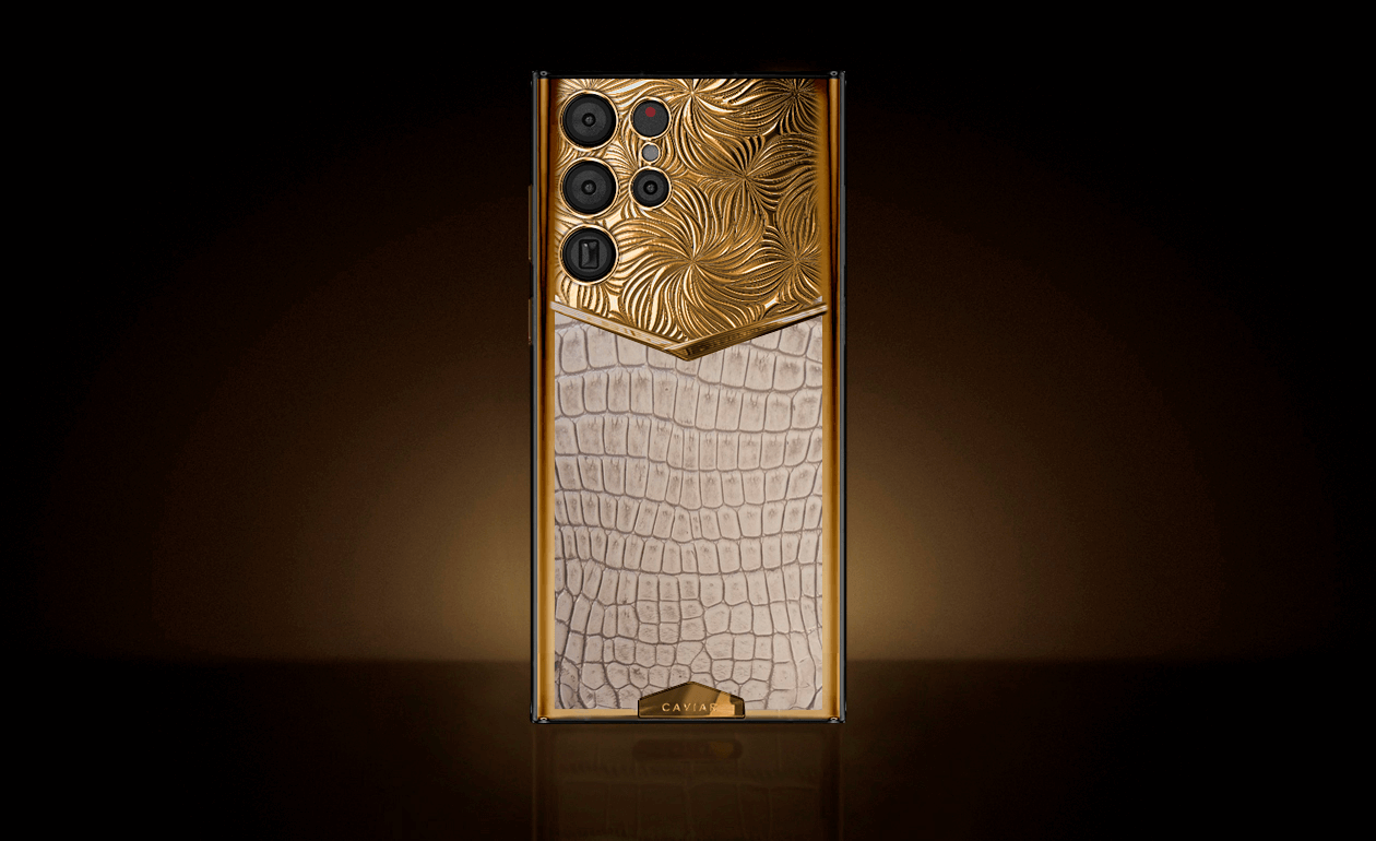 Яркая новая модель от мастеров Caviar - Samsung Galaxy S22 Bird of Prey. Необыкновенное сочетание золотого покрытия и натуральной кожи крокодила бежевого цвета. Объединившись, они образовали роскошный тандем и придали телефону элегантности и шарма. V-образная фирменная «галочка» Caviar, дополняет картину, являясь символом победы и превосходства.