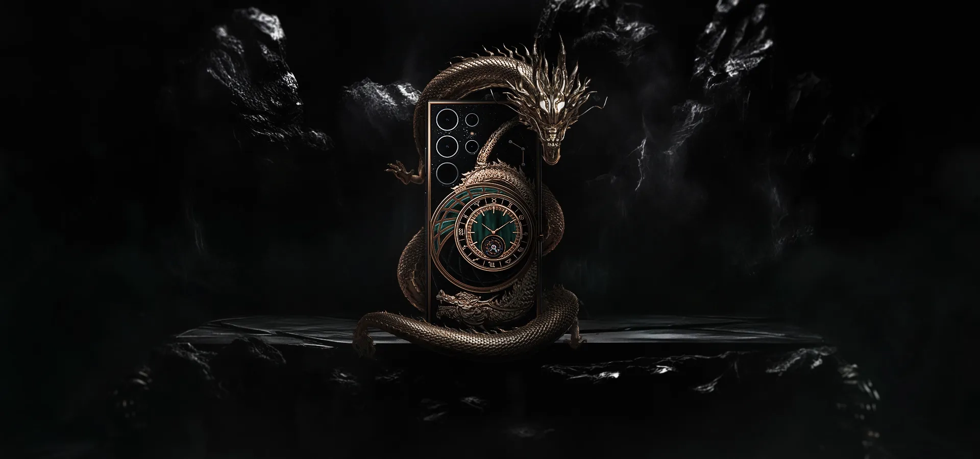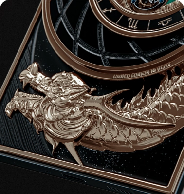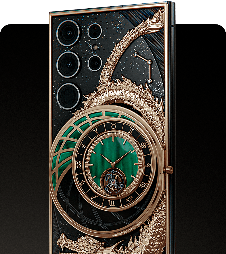 Насладитесь гармонией деталей - механические часы Caviar с турбийоном и зеленым циферблатом, объемная скульптура Дракона, зодиакальный круг, покрытый 24-каратным золотом, бриллиантовое созвездие, отсылающее к истории Samsung. Всего 24 экземпляра во всем мире.