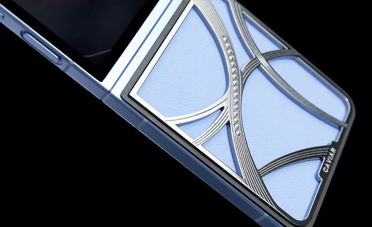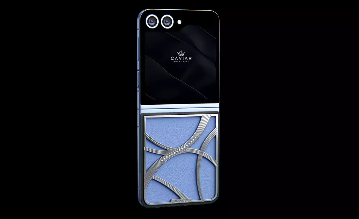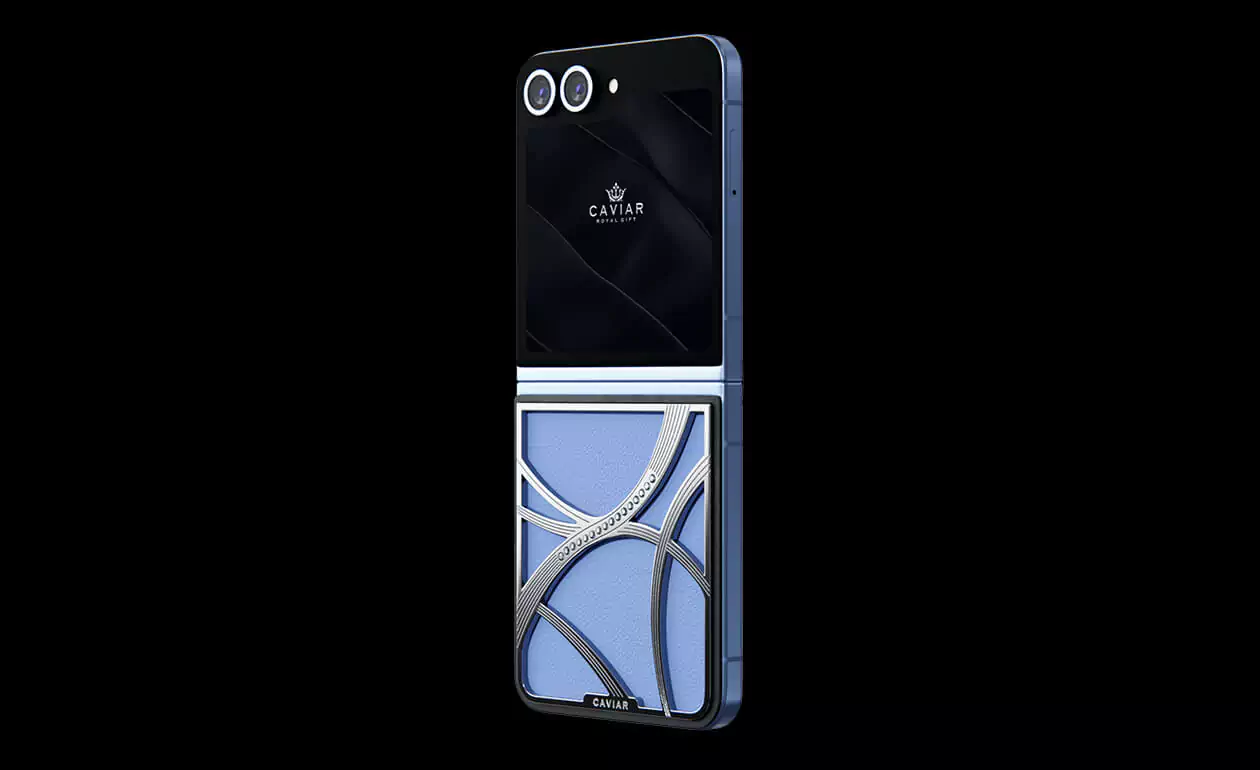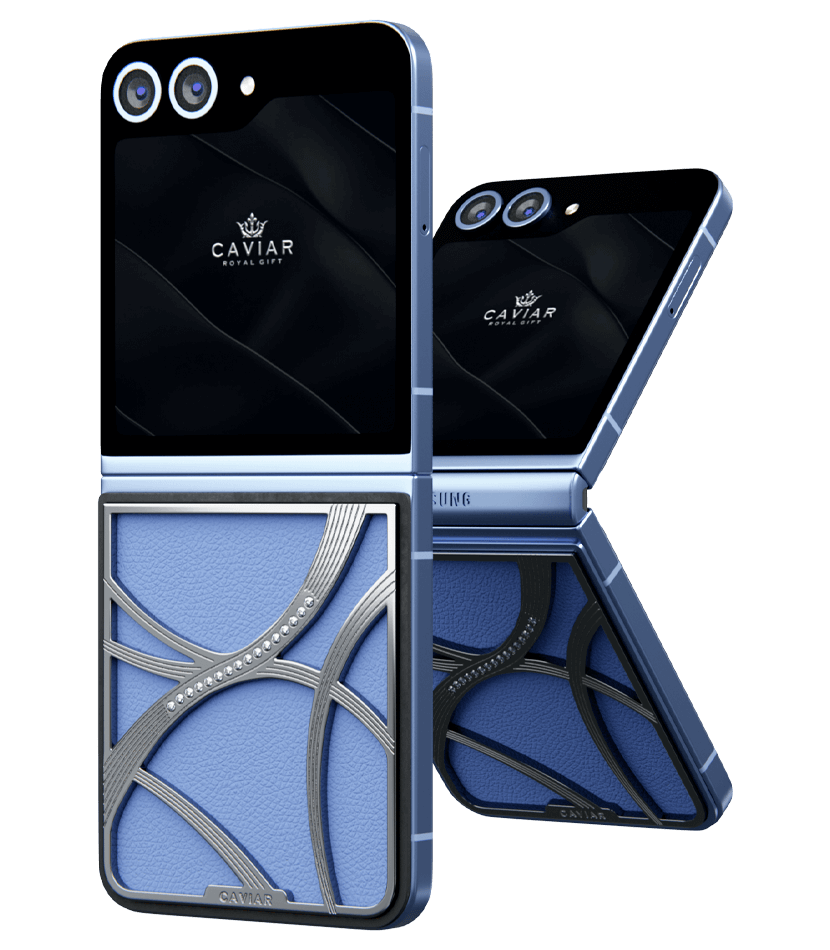 Представляем кастомный Samsung Z Flip6 от Caviar, выполненный в стиле tenniscore - самом актуальном в текущем году. Эта модель обтянута нежной натуральной синей кожей, которая прекрасно сочетается с изысканным узором, выполненном из серебра 22 карата. Узор дополняется 16 кристаллами Swarovski.