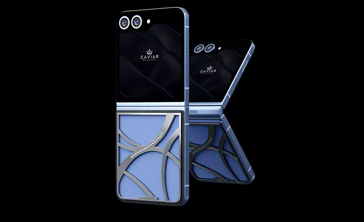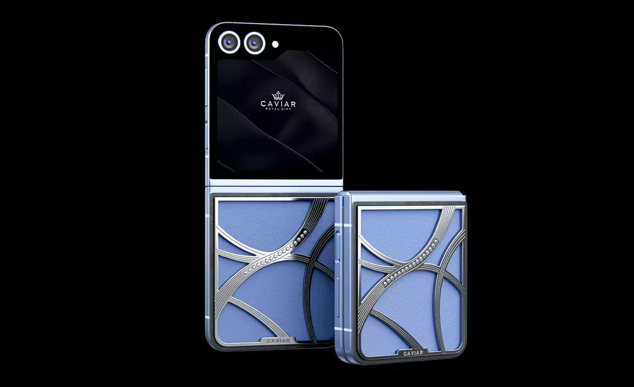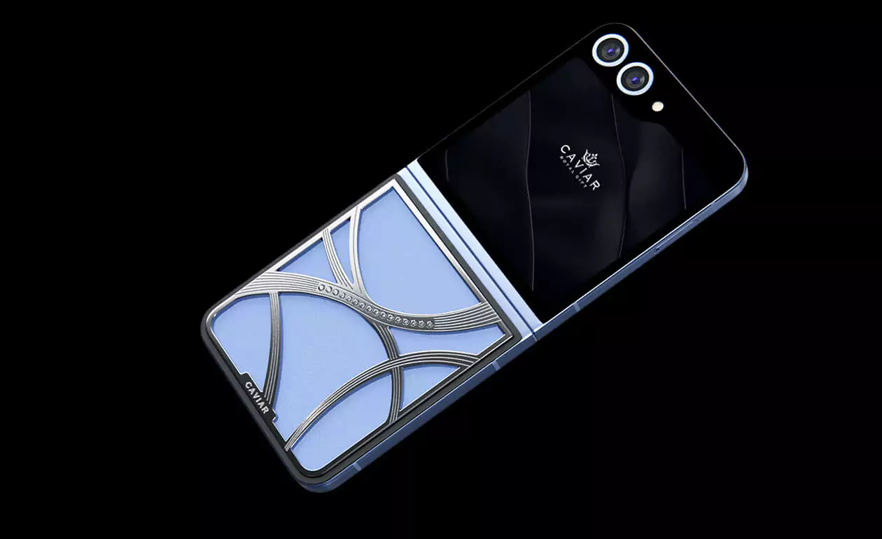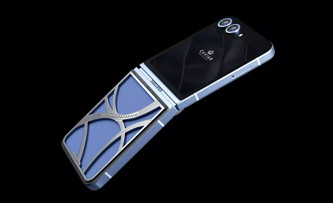 Представляем кастомный Samsung Z Flip6 от Caviar, выполненный в стиле tenniscore - самом актуальном в текущем году. Эта модель обтянута нежной натуральной синей кожей, которая прекрасно сочетается с изысканным узором, выполненном из серебра 22 карата. Узор дополняется 16 кристаллами Swarovski.