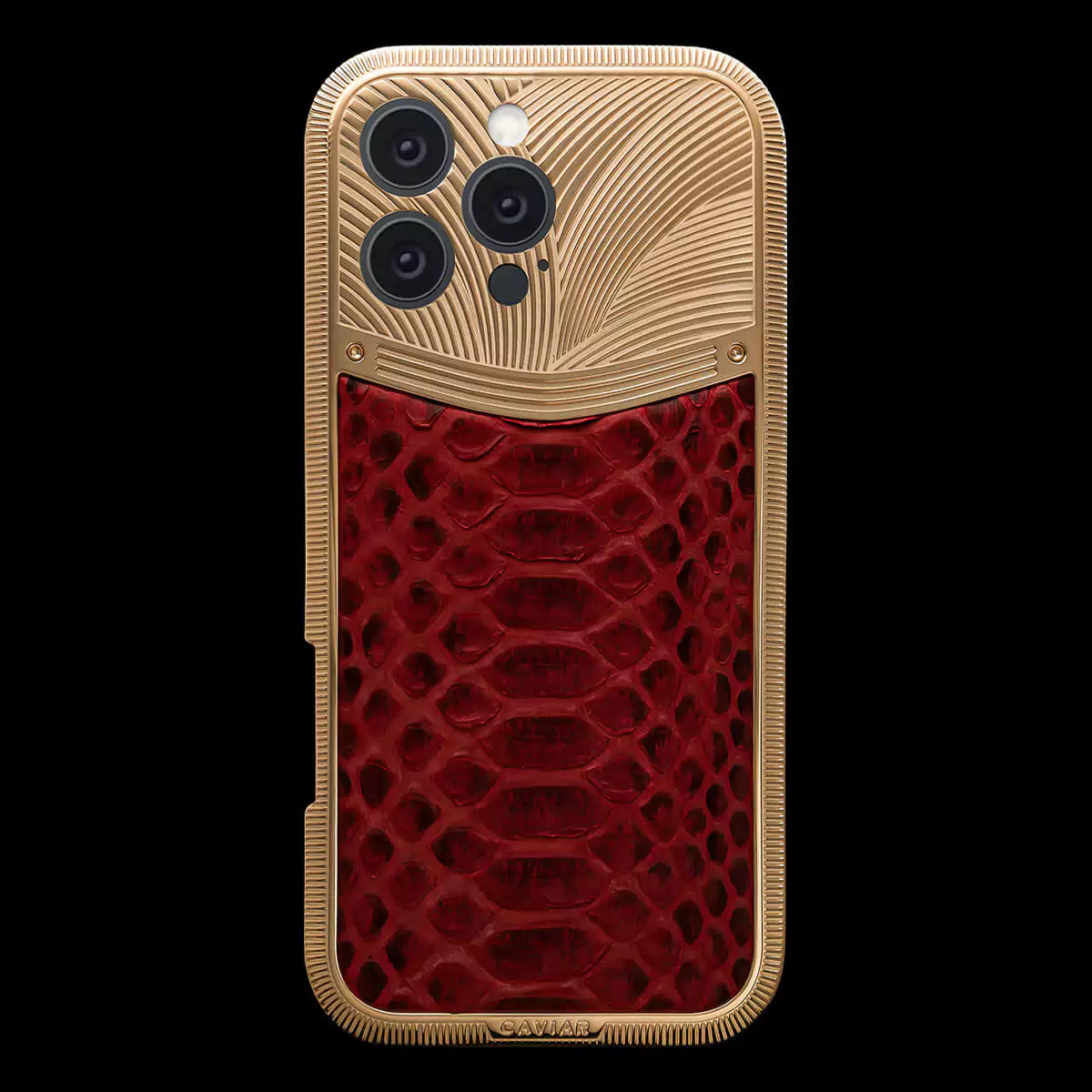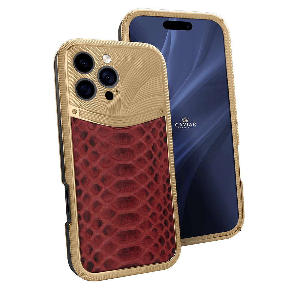 Scarlet Queen от Caviar — воплощение чувственности и роскоши. Изящный корпус, покрытый двойным слоем золота 999 пробы, дополнен экзотической кожей змеи глубокого красного оттенка.