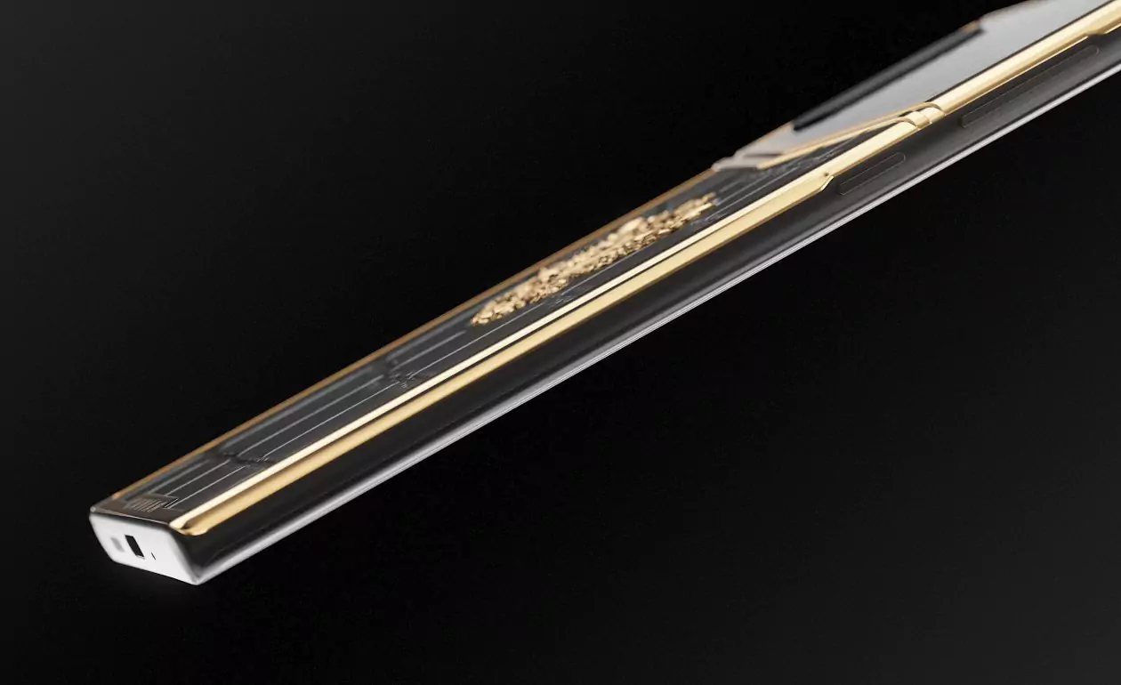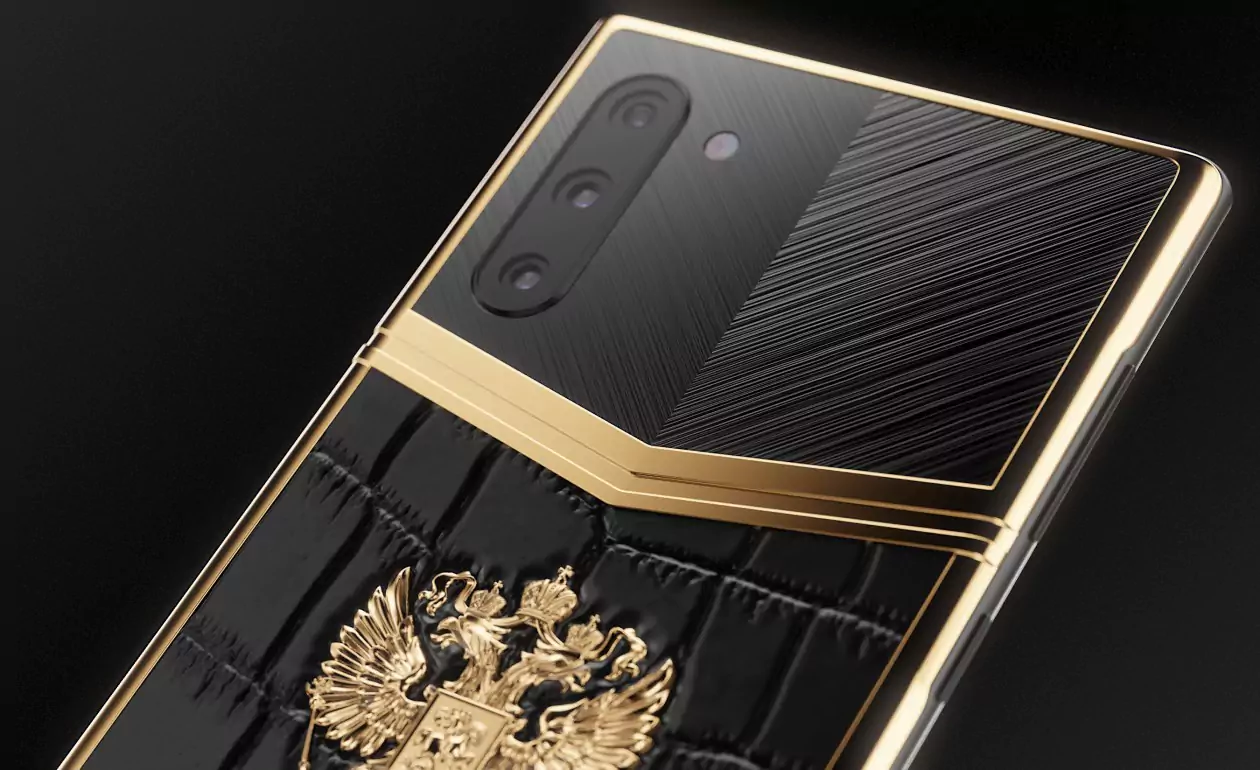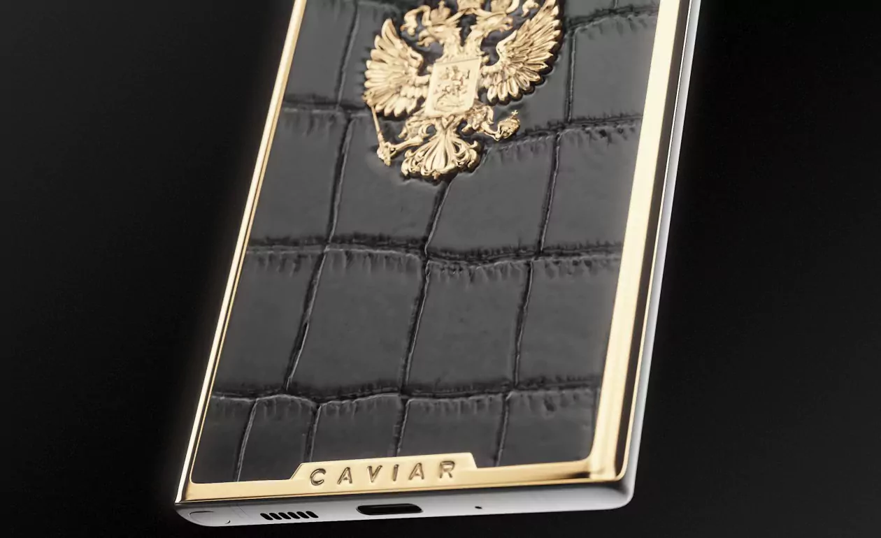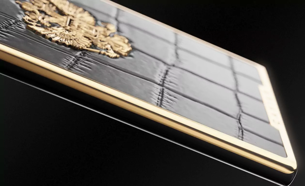 Взяв за основу дизайнерский «каркас» коллекцию Victory, мастера Caviar добавили к нему узнаваемого «звучания» из Российской коллекции и получили новый облик современного патриотичного смартфона. В его стиле — динамика линий, гармоничные пропорции, уверенный тандем материалов (черный композитный оникс и кожа аллигатора) и бескомпромиссное сияние Герба РФ, покрытого золотом. Гармония, которой мы достигли, создавая этот дизайн, чувствуется в каждой линии, в каждом нюансе, образующем «портрет» смартфона. Что можно рассказать о человеке по тому, как выглядит его телефон? Как минимум то — каким человек видит окружающий мир и свое место в общей картине действия, и если этот телефон украшен изображением Двуглавого Орла и выполнен в выразительном альянсе черного и золотого, то перед нами личность, которая живет настоящим, не теряя с ним прочнейшей связи, но при этом — глубоко чтит прошлое, а помыслами и взглядами устремлена в будущее, к новым целям, вершинам и достижениям, на благо своей великой страны.