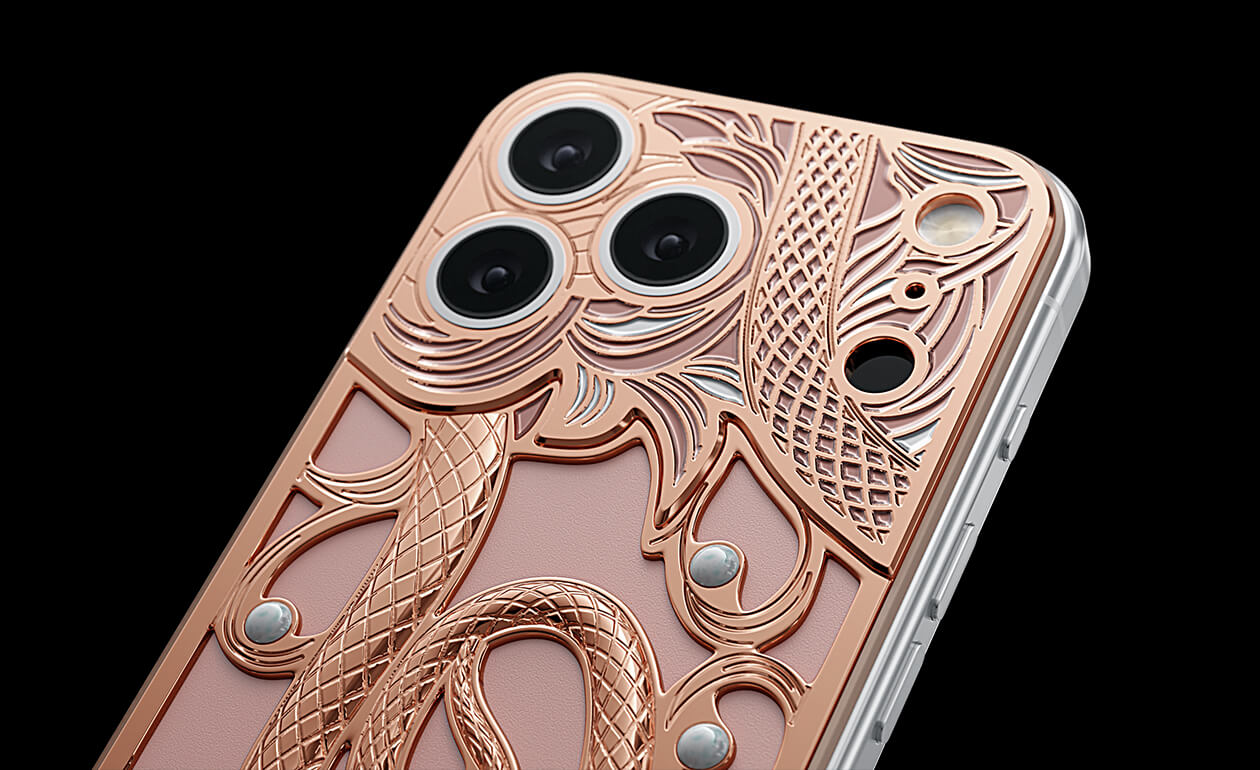 Погрузитесь в мистическую магию любви и обновления с Serpentis Pearl. Этот дизайн вдохновлен изящной змейкой, обвивающей жемчужину. Ее тело изгибается в форме сердца — символа страсти и женственности. Роскошные линии Bulgari и смелость Schiaparelli переплетаются в уникальном iPhone, который подчеркнет силу и элегантность своей владелицы. Serpentis Pearl — ваше секретное признание в любви.