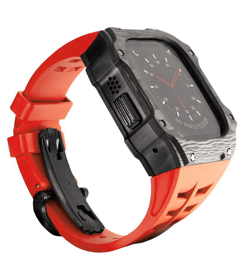 Пробудите дух силы с корпусом Rage для Apple Watch Ultra. Изготовленный из автомобильного карбона, этот огненно-красный аксессуар воплощает скорость и бешенную энергию, словно бушующее пламя. Идеальное дополнение к самым передовым электронным часам, созданным человечеством. Почувствуйте ярость гонщика с Rage.