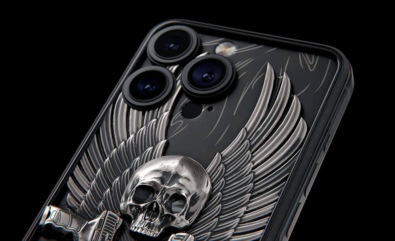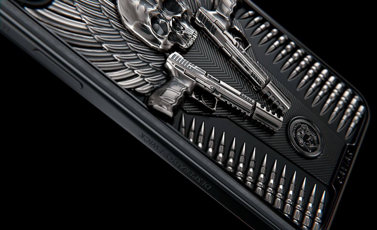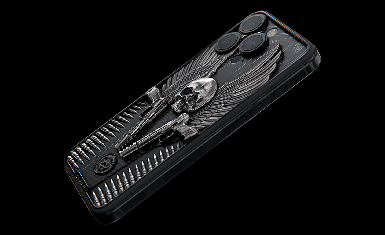 Мастера Caviar заключили яростный дух охотника за головами в кастомный iPhone 17 Pro Bounty Hunter. Смелый дизайн с черепом и двумя перекрещивающимися пистолетами воплощает дух борца за справедливость. Вдохновленный неумолимым желанием свободы и возмездия Джона Уика, этот iPhone – не просто устройство, а символ непоколебимой решимости. Особый элемент, который придется по вкусу фанатам саги о наемном убийце - лазерная гравировка монеты Континенталь на титановом корпусе смартфона.