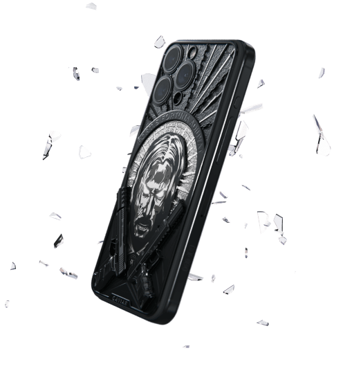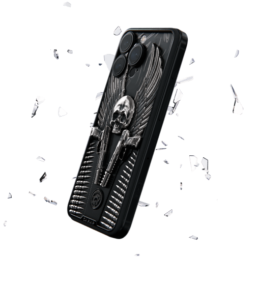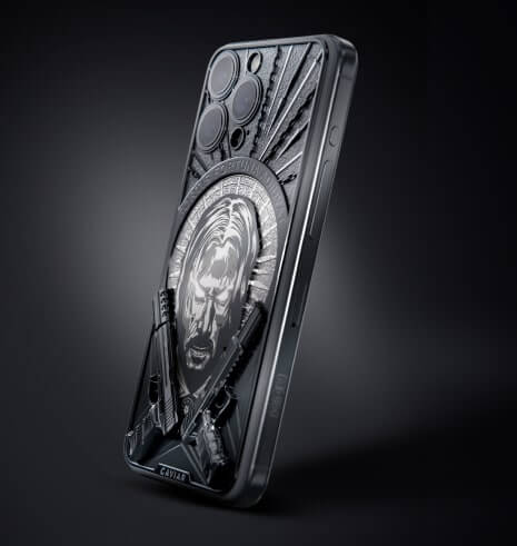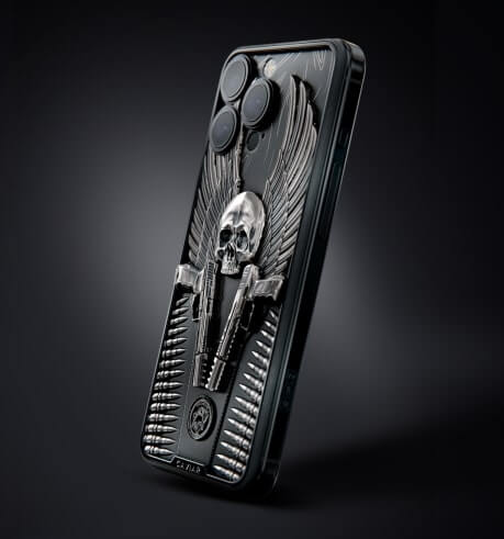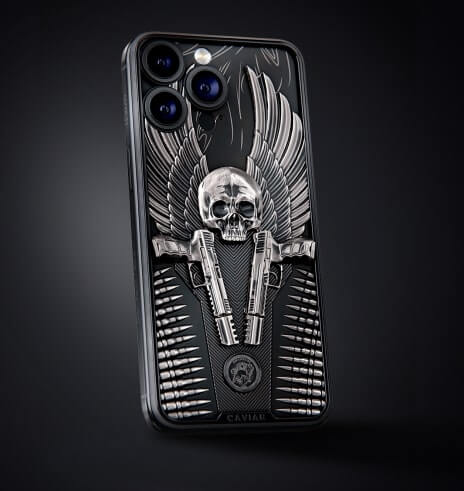 Корпус смартфона инкрустирован объемным барельефом черепа и двумя пистолетами Heckler & Koch P30 из фильма "Джон Уик". Словно яростный ангел, герой следует своему кодексу и вершит справедливость. Именно этот символ Caviar передал в модели Bounty Hunter.