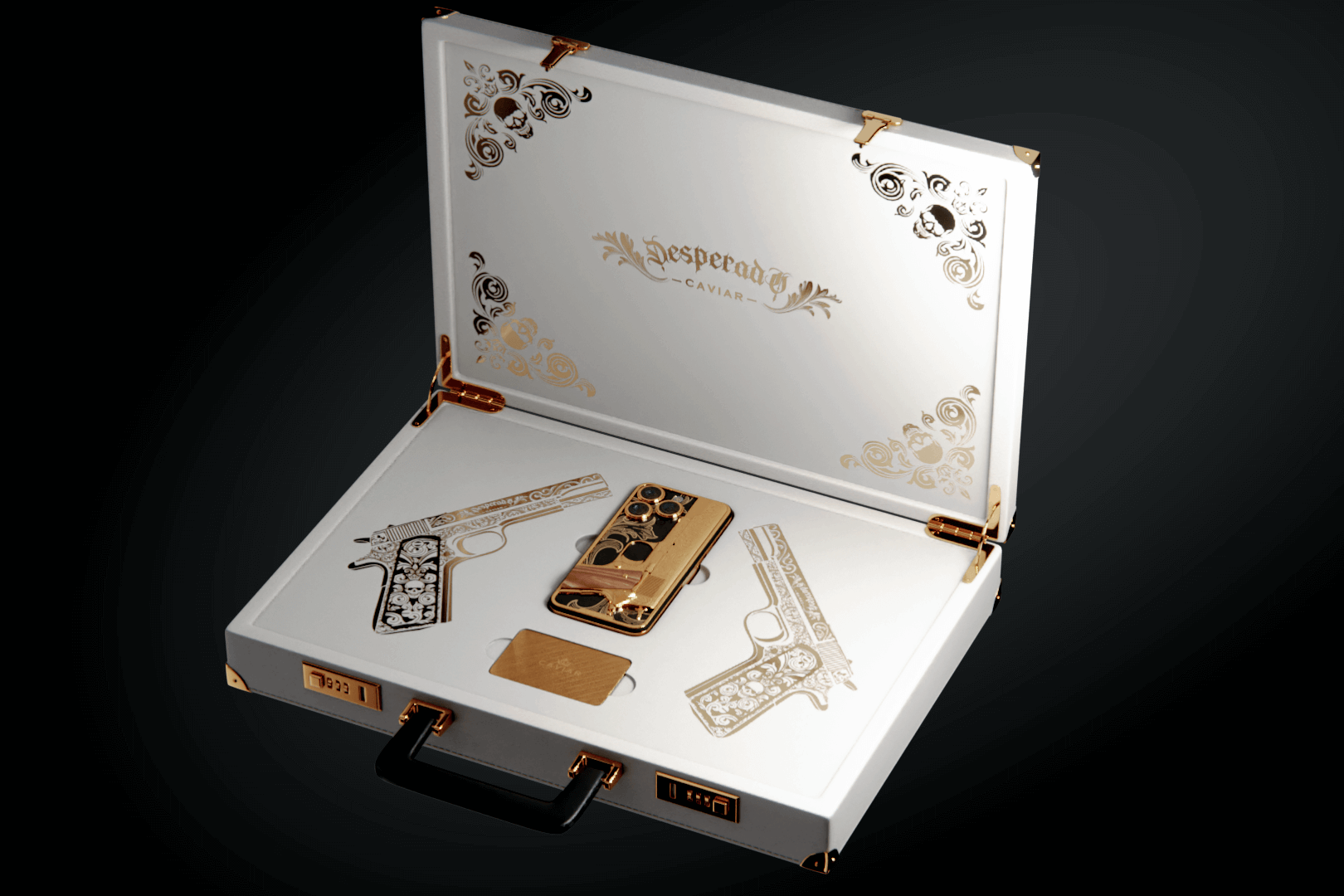Caviar предлагает Вам особенный пистолет, который никогда не дает осечки. Notorious – это декоративный элемент, покрытый золотом 24К. Он не стреляет, но попадает в самое сердце.
