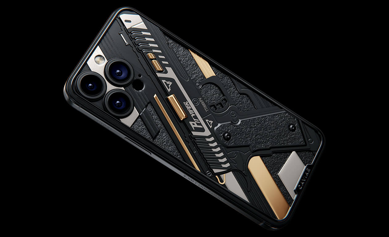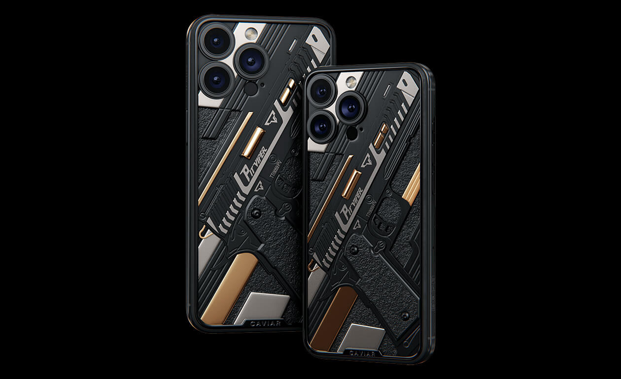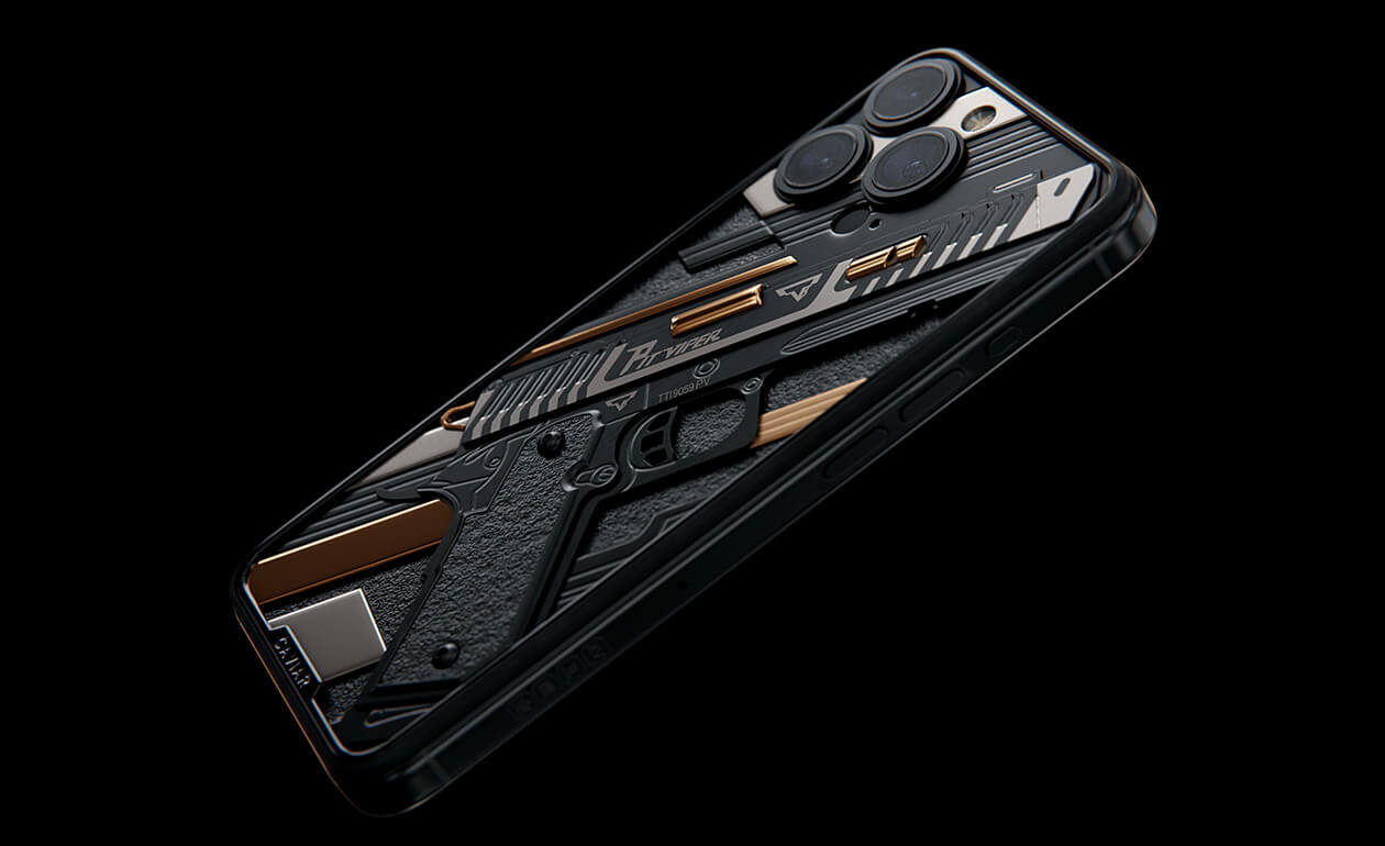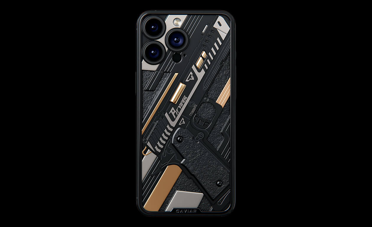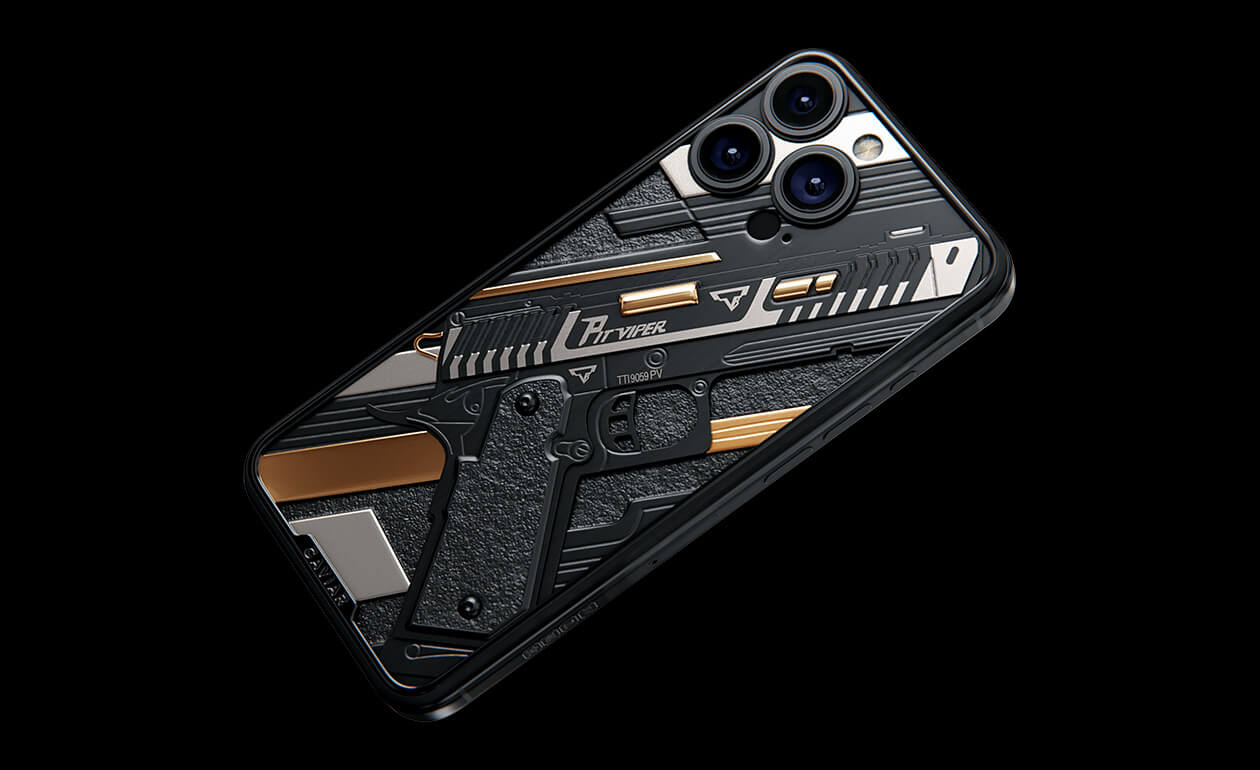 Представляем iPhone 17 Pro Viper, демонстрирующий грозное оружие Джона Уика. Дизайн кастомного устройства воплощает стиль и точность наемного киллера. Каждая деталь сделана из роскошных материалов, чтобы передать атмосферу культового боевика. Титановые части пистолета покрыты PVD как в лучших швейцарских часах, а некоторые элементы - 24-каратным золотом.