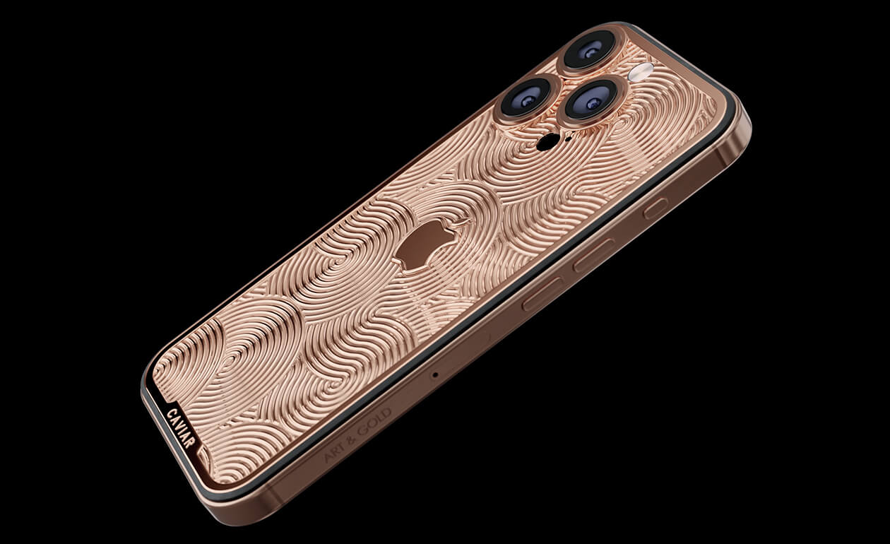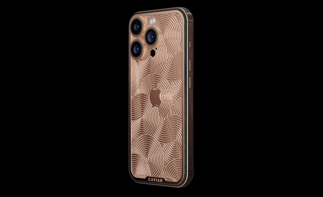 Пустынные барханы на корпусе вашего смартфона. Caviar вдохновился цветом Desert Titanium из новой линей iPhone 17 и возвел его в абсолют, повторив в золоте. Desert Gold – золотой iPhone, покрытый узорами, повторяющими чарующий пейзаж пустыни. Дань уважения технологиям Apple и роскошной эстетике Caviar.