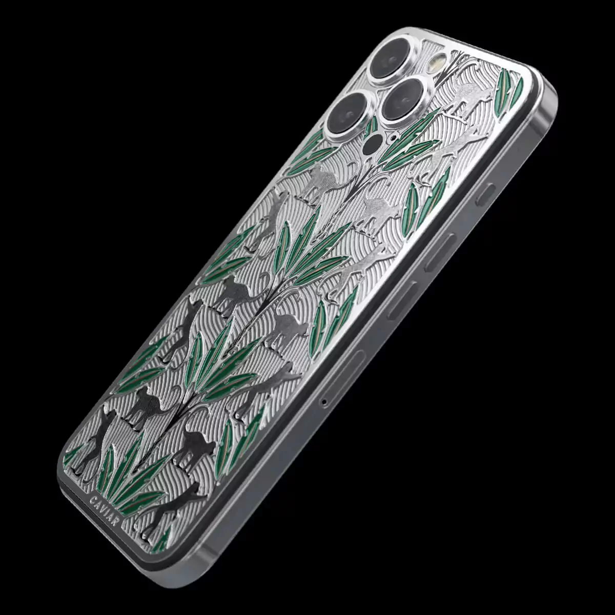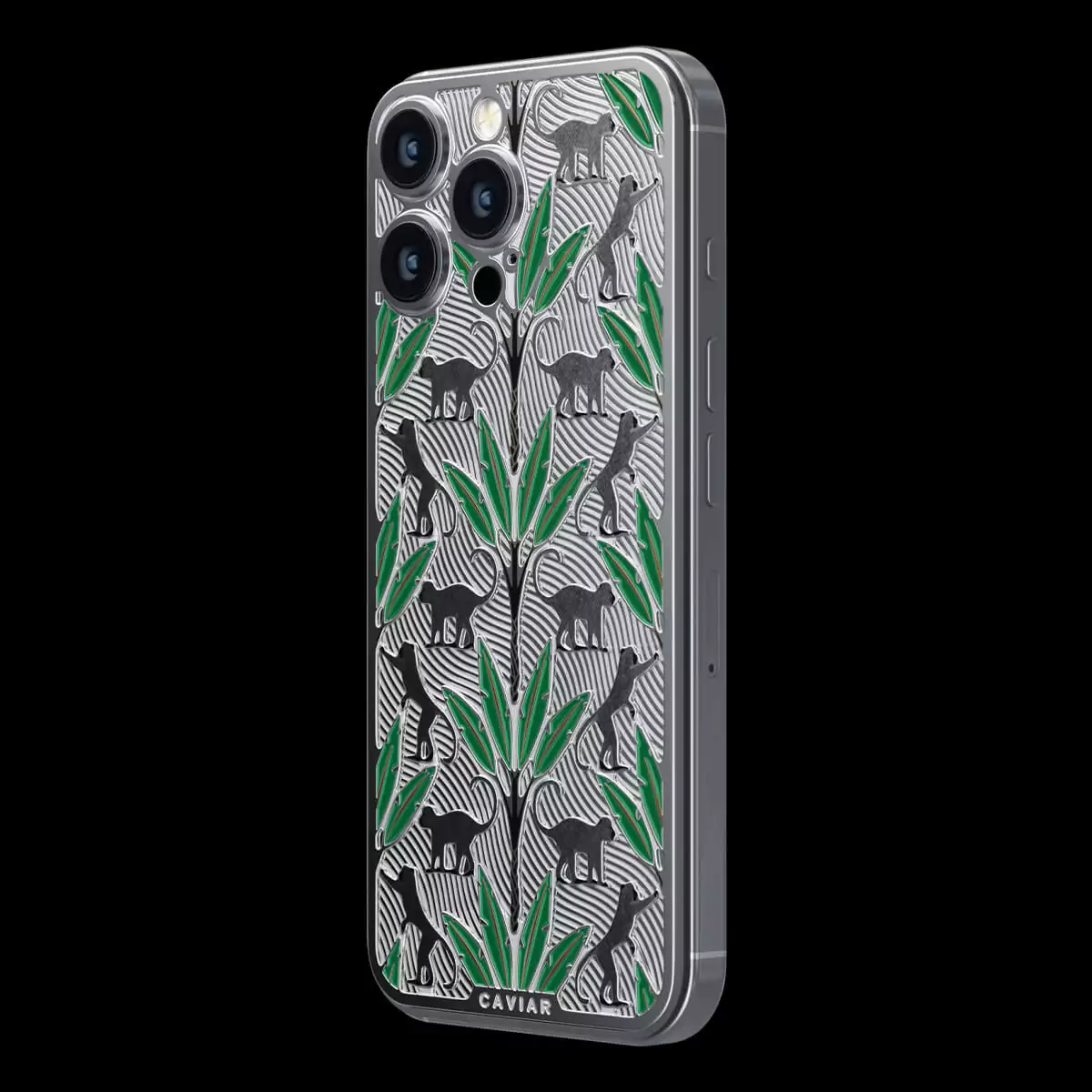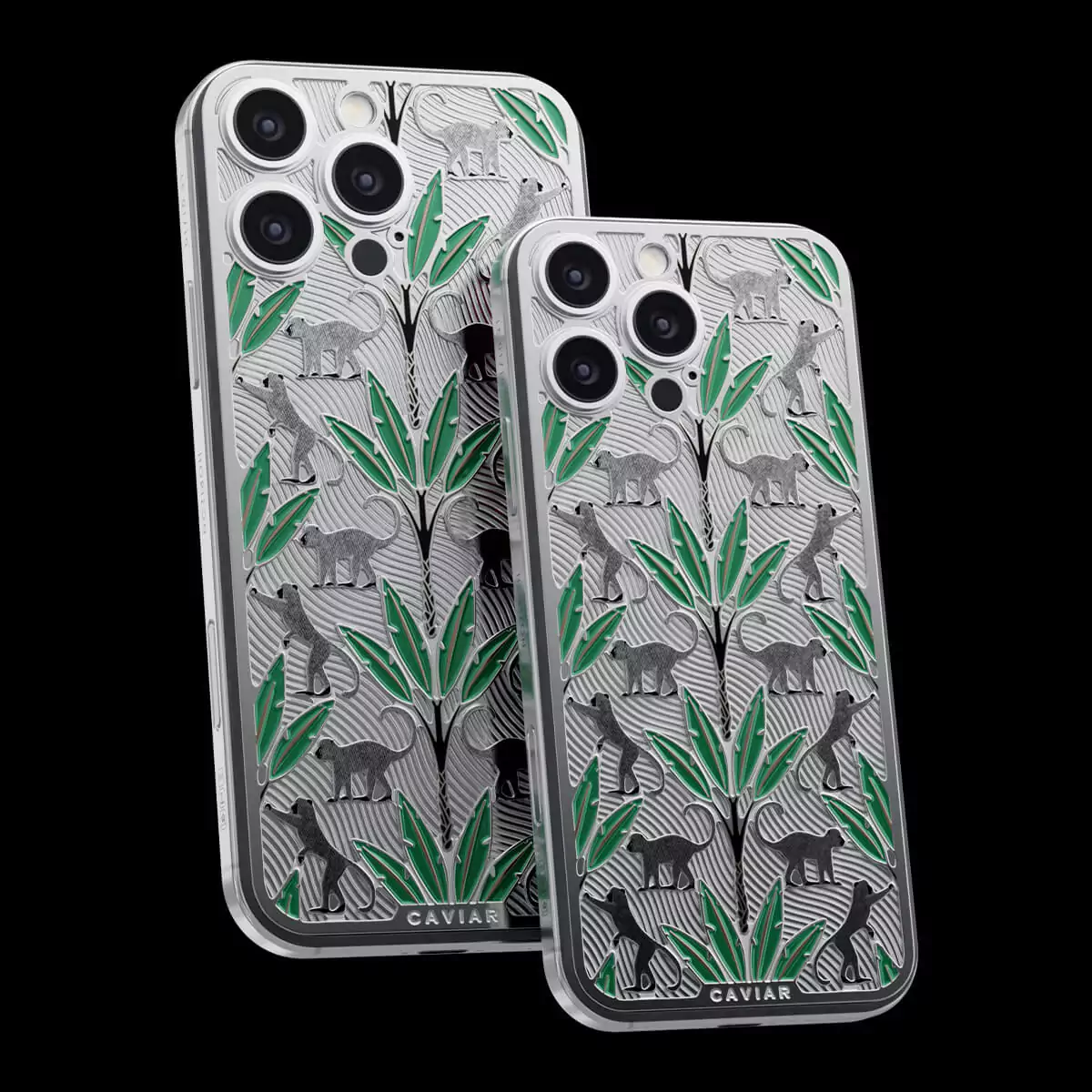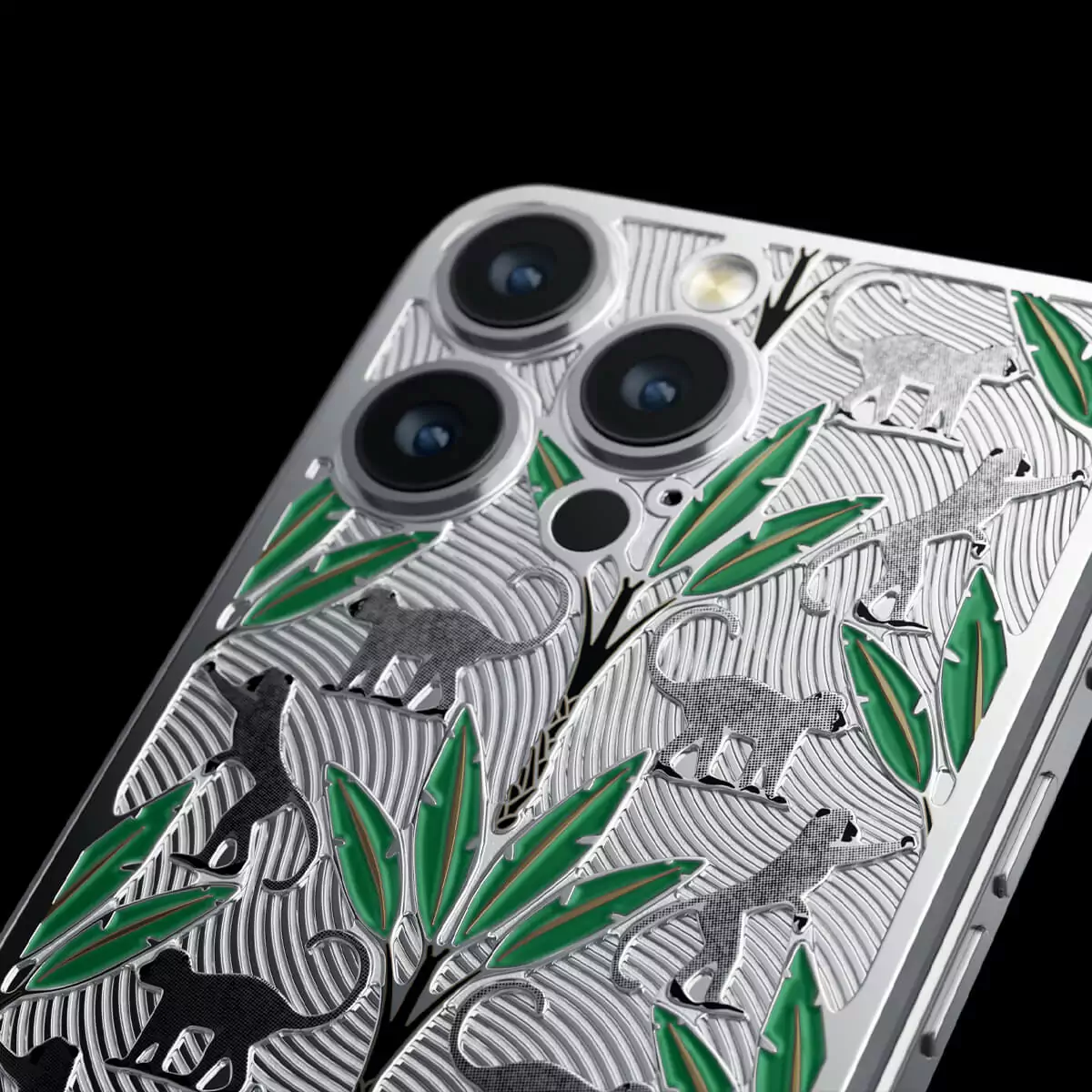 Титановая поверхность Gibraltar от Caviar словно высечена самой природой – на ней выгравированы гордые силуэты обезьян-маготов, которые стали символами этого места. Черные стволы пальм дополняют картину, а изумрудные эмалевые листья оживляют дизайн.