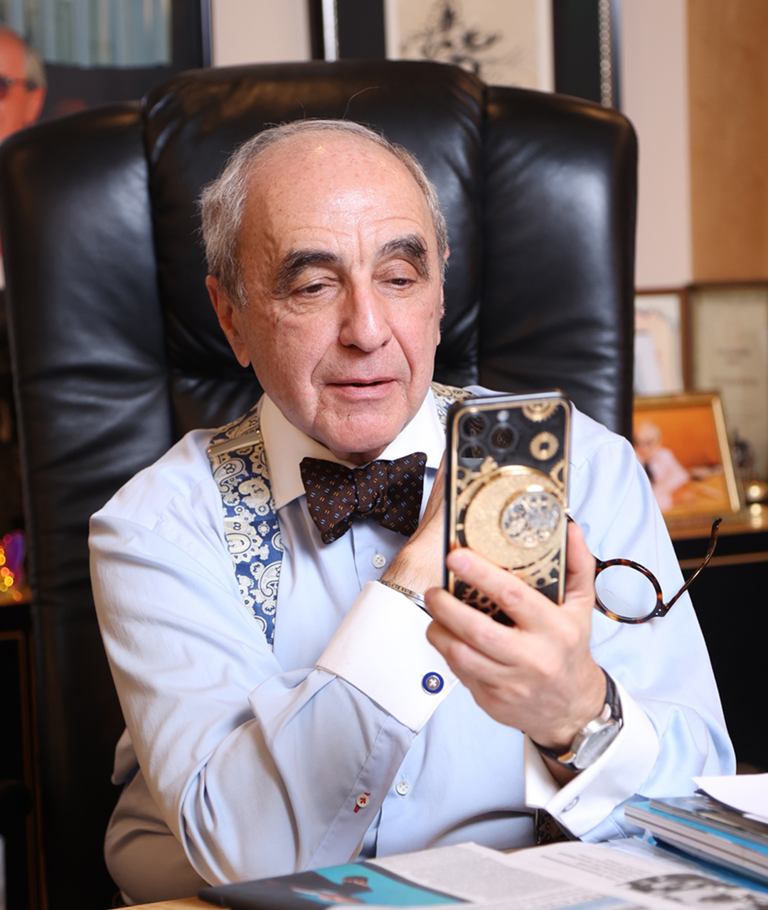 Александр Добровинский — обладатель кастомного смартфона Tourbillon Skeleton от Caviar из коллекции Grand Complications. Смартфон, в корпус которого встроен настоящий турбийон — часовой механизм, созданный для борьбы с несовершенством гравитации.