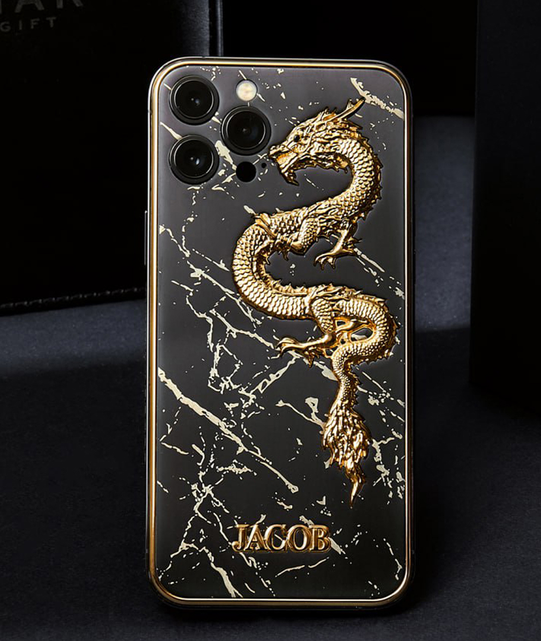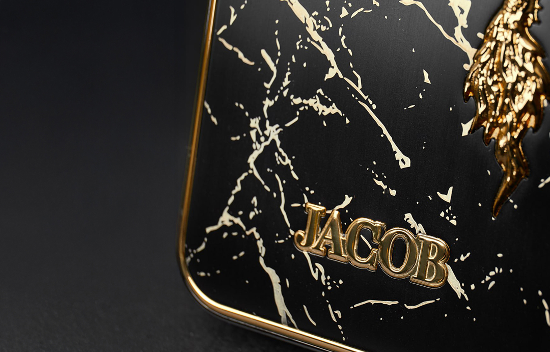 Когда дело дошло до выбора смартфона, друзья Арабо обратились к тем, кто разделяет его эстетику — бренду Caviar. Специально в качестве подарка для Джейкоба был создан смартфон с персональным дизайном, воплощающий главные черты его стиля: сложность, масштаб, архитектурную симметрию и вызывающее благородство.