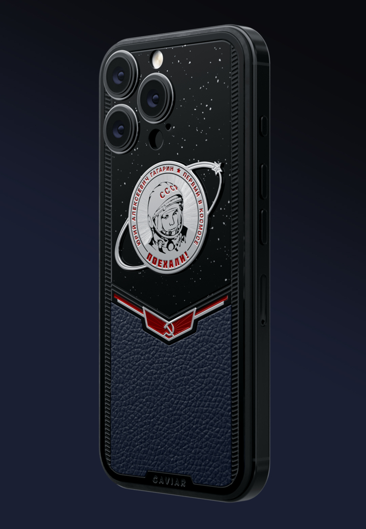 Смартфон, вдохновленный подвигом первого человека, покорившего космос. Дизайн оформлен в космическом стиле: гравировка орбитальных линий, знаменитое «Поехали!», портрет Гагарина и флаг СССР, созданный при помощи ювелирной эмали. Корпус выполнен из авиационного титана с чёрным PVD-покрытием — материал, используемый в космической индустрии. Эта модель — о вере в невозможное, технологический трибьют подвигу, изменившему ход истории.