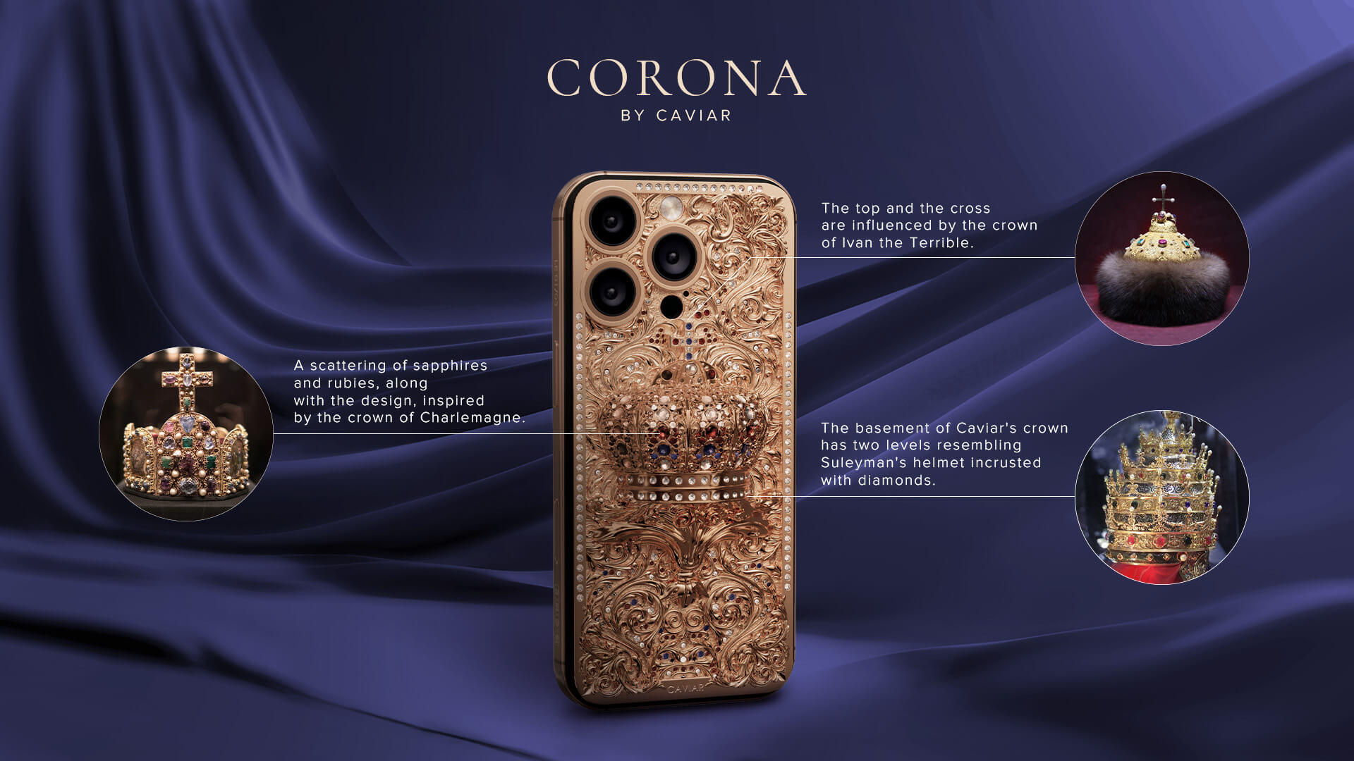 Caviar – это люксовый бренд, который создает роскошные версии гаджетов Apple, сочетая редкие материалы и передовые технологии. На этот раз дизайнеры компании дополнили кастомную коллекцию Corona новыми моделями, украшенными барельефами корон. Цена главной модели доходит до 21 миллионов рублей.