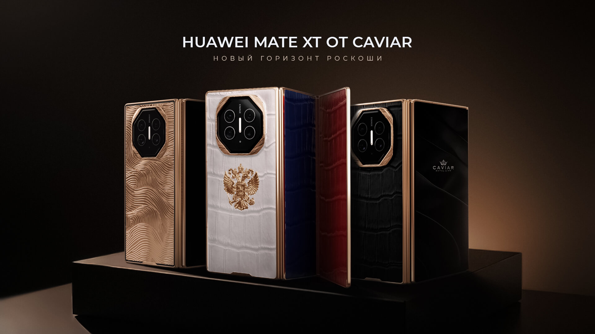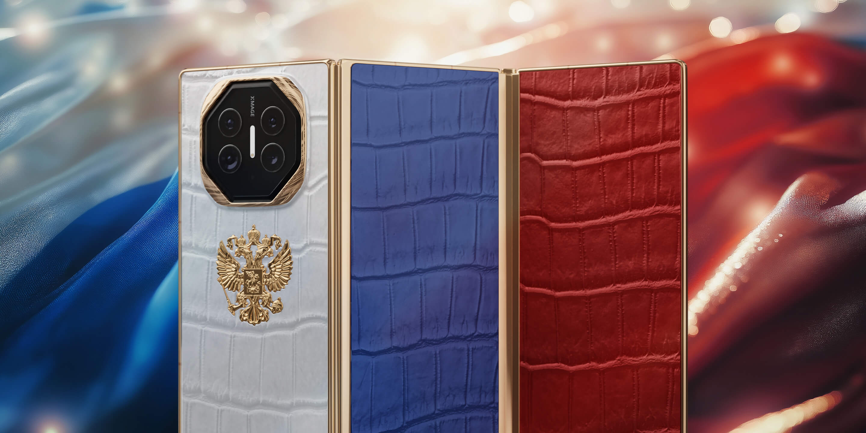 Caviar представил на сайте кастомную коллекцию Huawei Mate XT, созданную с использованием премиальных материалов, таких как 24-каратное золото и крокодиловая кожа в цветах российского флага.