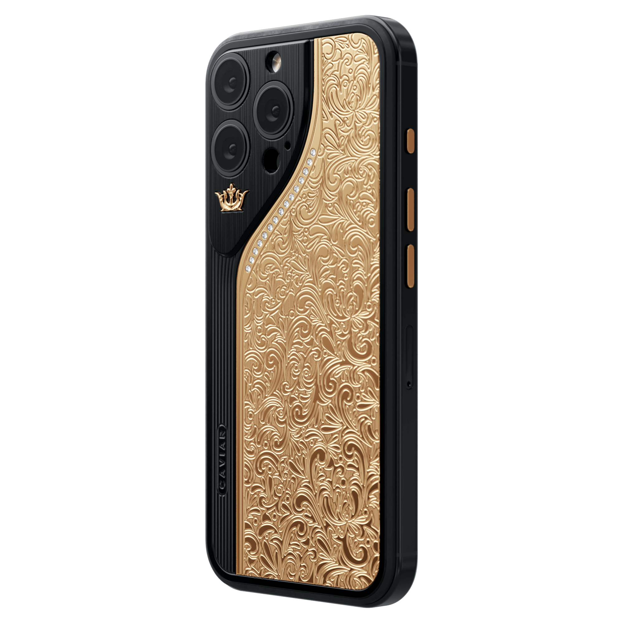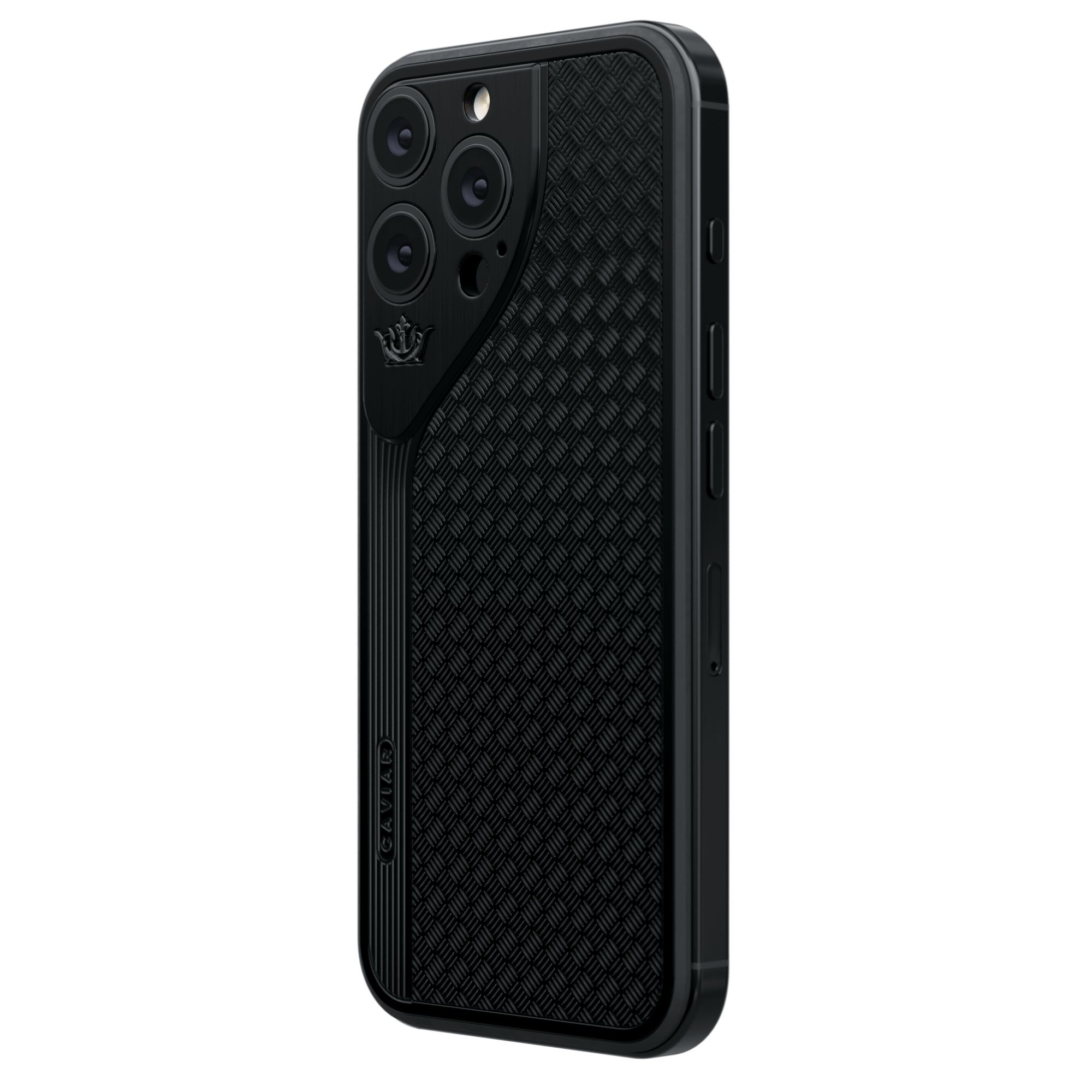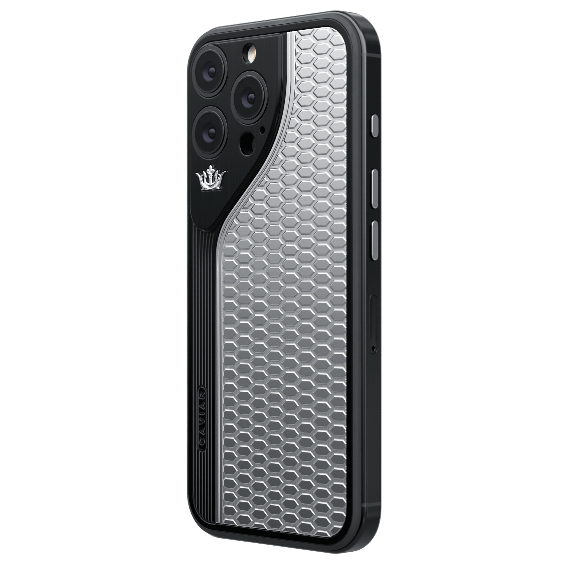 Новая линейка интерпретирует блок камеры iPhone в уникальном исполнении: симметричный треугольный модуль с изогнутой рамкой, придающий устройству визуальный баланс и подчеркивающий классический стиль Caviar.