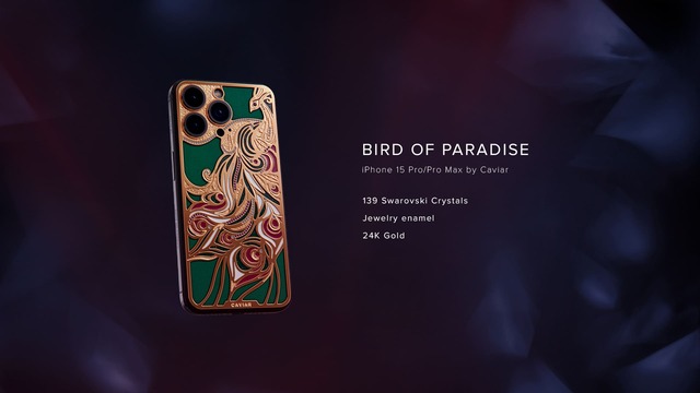 Райская коллекция включает в себя пять дизайнерских моделей iPhone 15 Pro, украшенных золотом, бриллиантами и кристаллами Swarovski. Самый дорогой смартфон из этой коллекции стоит 4 200 000 рублей.
