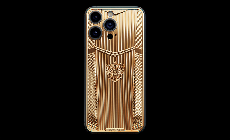 Корпус iPhone 15 Pro Max «Империя» корпус выплавлен из цельного слитка 18-каратного золота. В дизайне угадываются архитектурные мотивы Александровского и Андреевского залов Большого Кремлевского дворца. Когда-то там располагался Императорский трон, позднее проводились съезды компартии, сейчас это место Инаугурации Президента России. Мастера Caviar постарались воссоздать великолепие этих исторических памятников в очертаниях аксессуара.