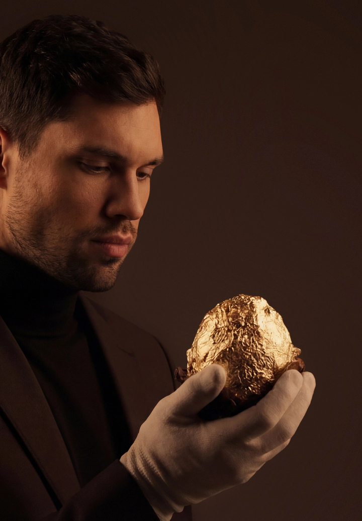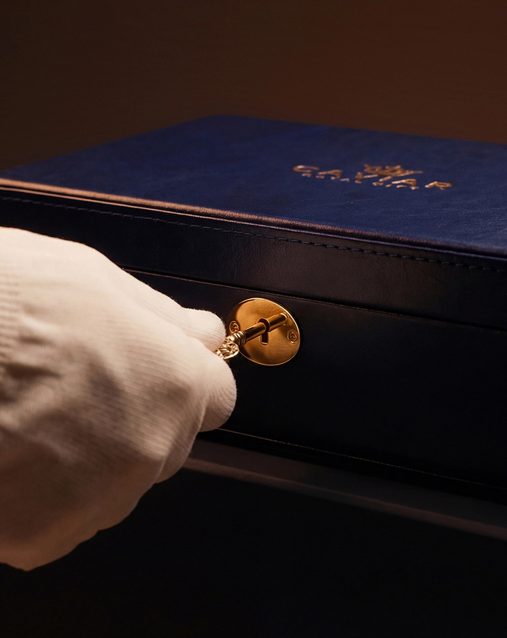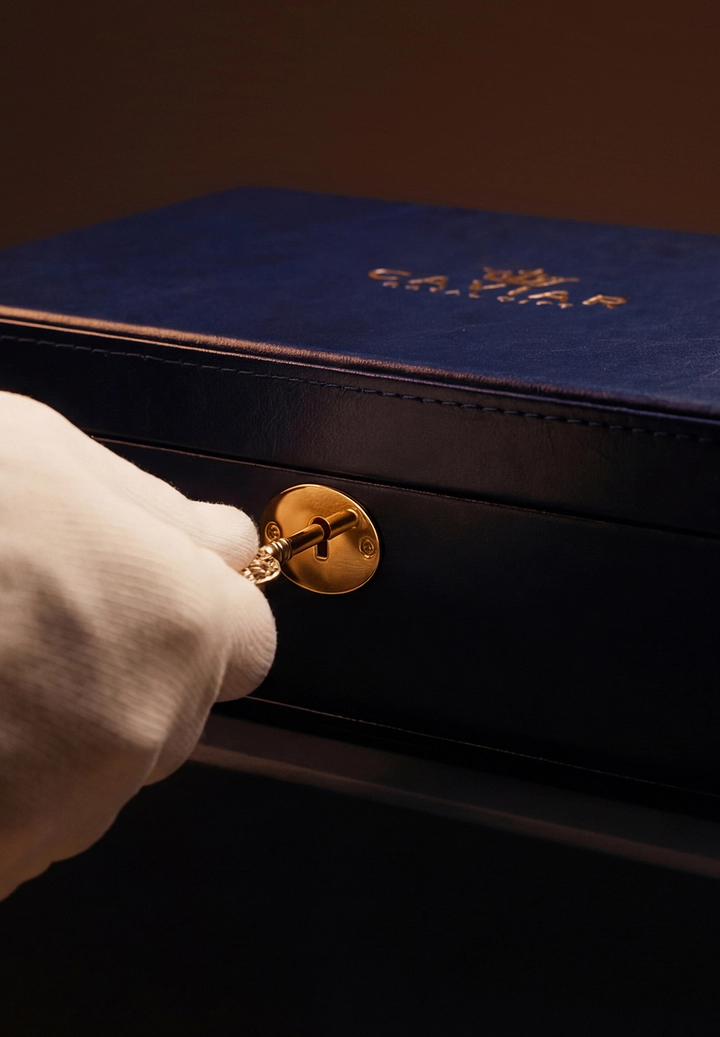 Глубокий синий оттенок упаковки создаёт тишину. Внутри — золото, скрытое до момента кульминации.