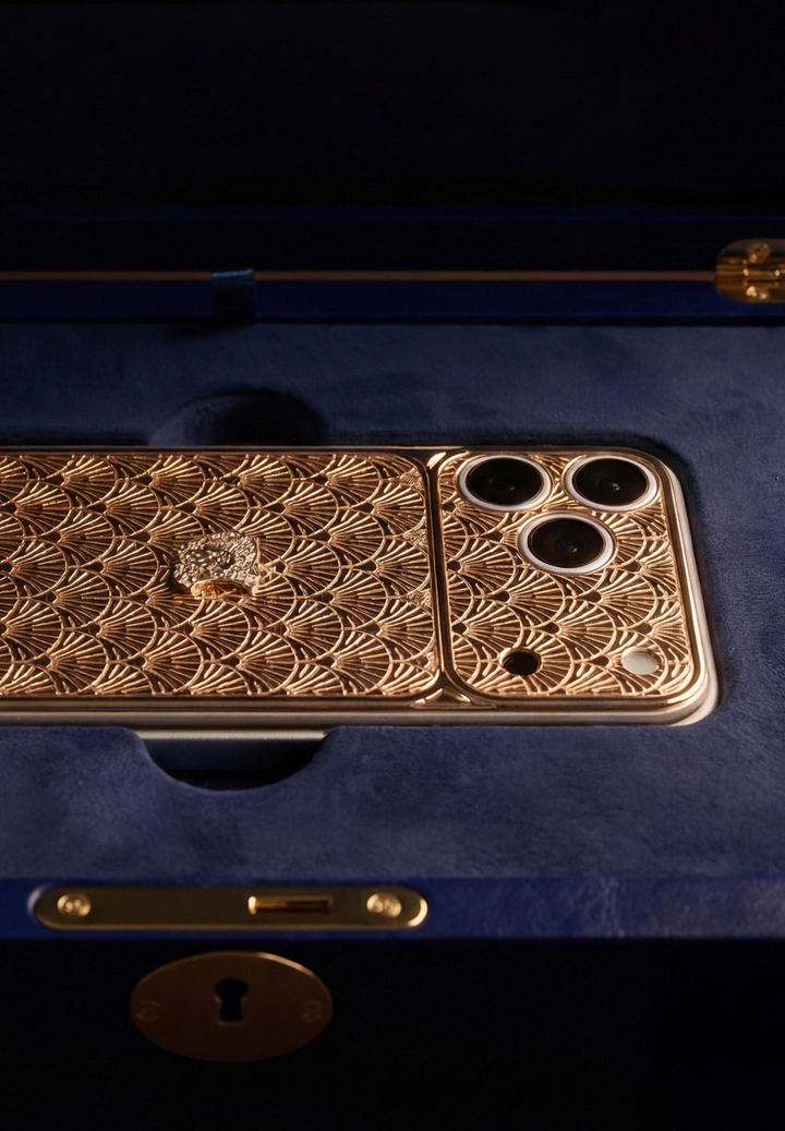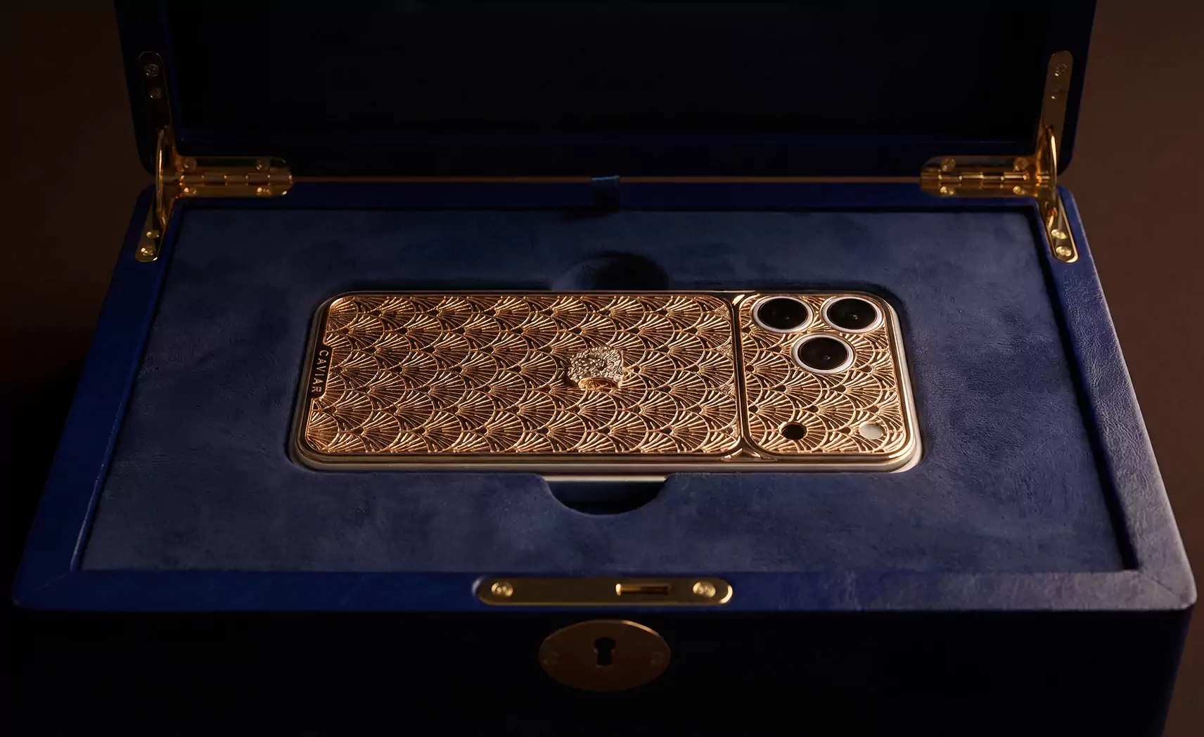Ключ открывает футляр с золотым смартфоном Caviar.