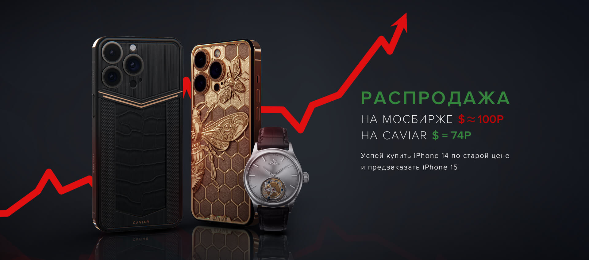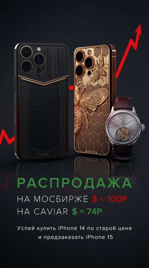 Доллар растет, ожидается курс 100 рублей за доллар. Caviar сохраняет для Вас "зимний" курс в 74 рубля за доллар. Закажите готовые iPhone 14 и аксессуары по выгодной цене, пока они не подорожали. Узнайте персональную стоимость и сделайте выгодную покупку сегодня.