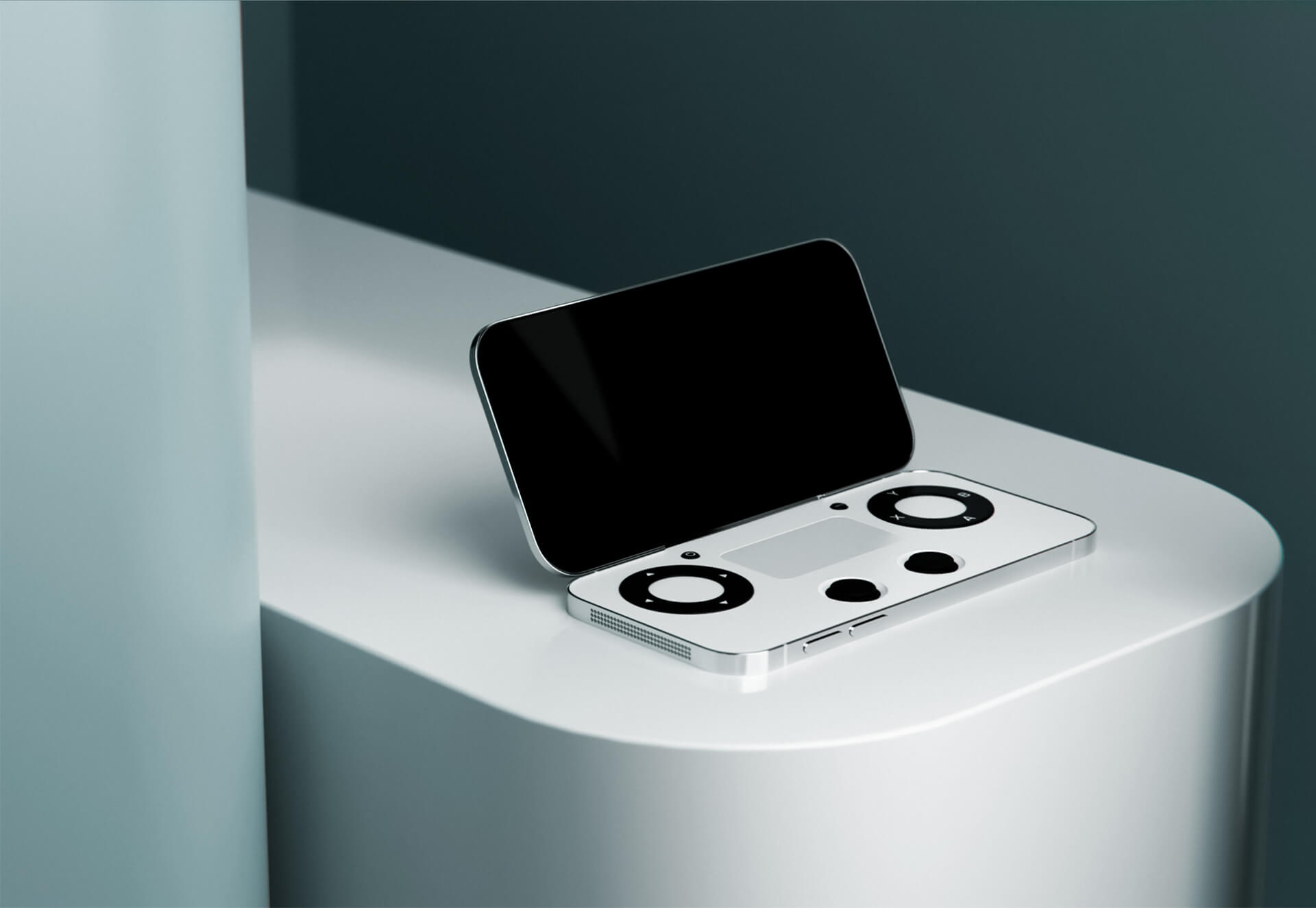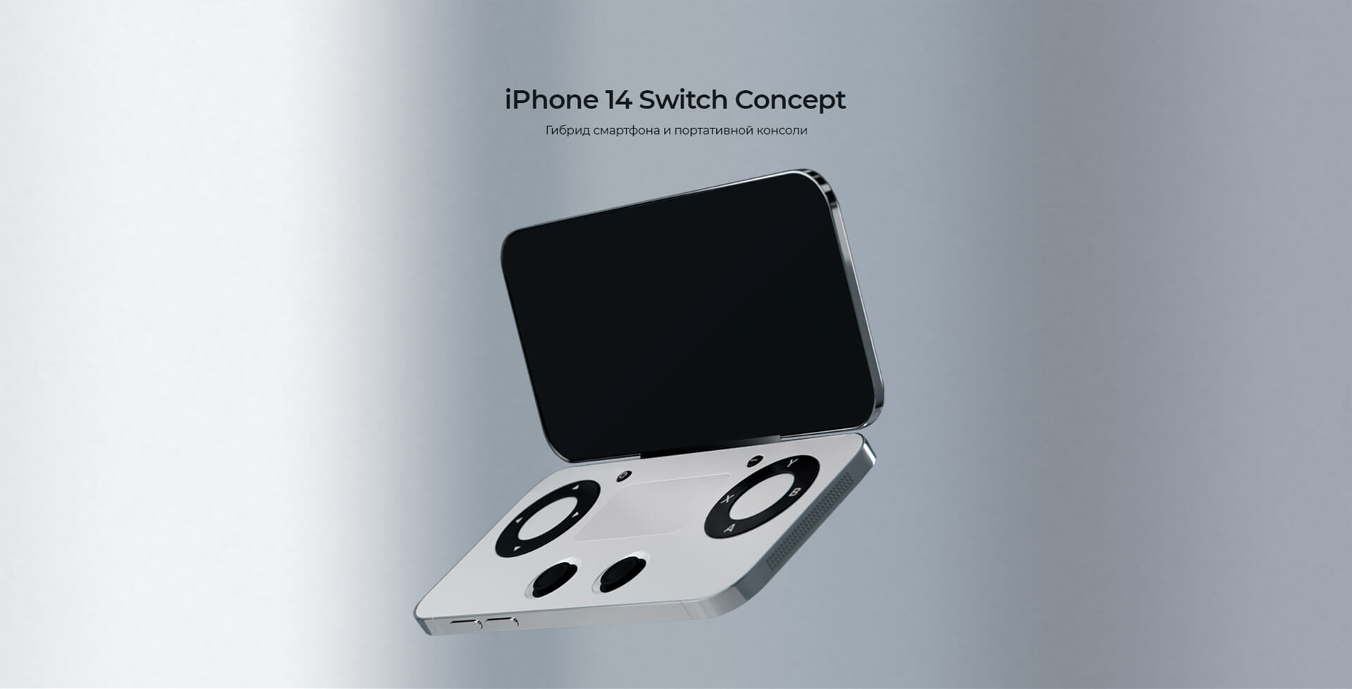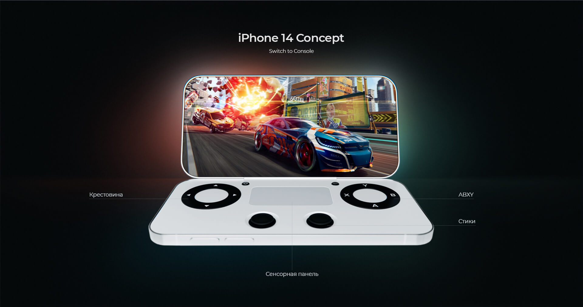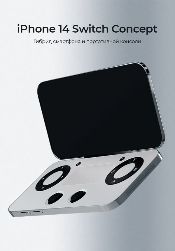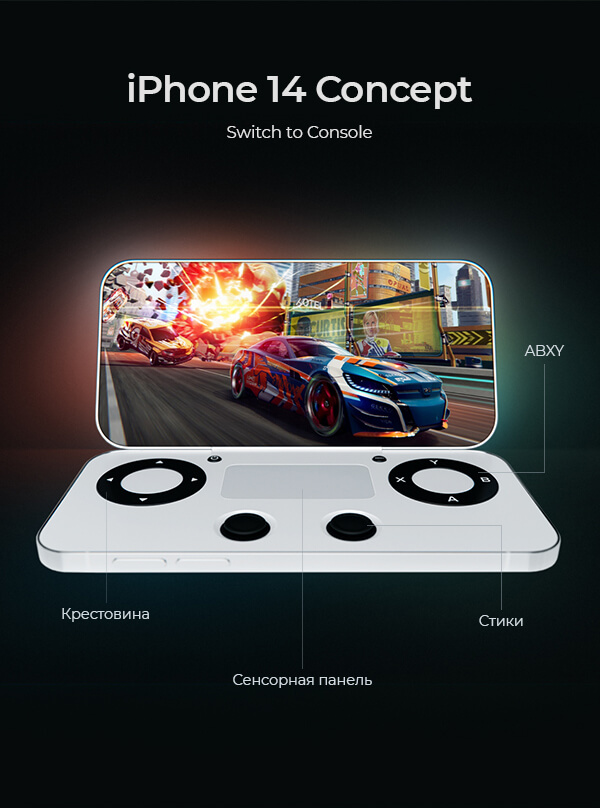 В нашей версии iPhone 14 Switch у девайса появился дополнительный игровой экран, компактные, встроенные корпус элементы управления - стики, кнопки и тачпад в середине.