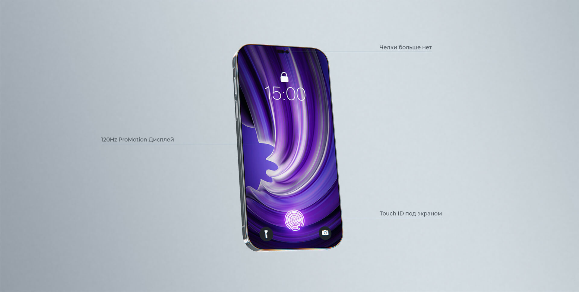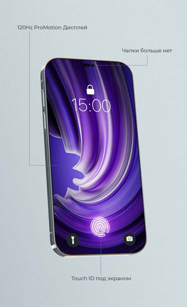 Этот смелый концепт получил название iPhone 14 Pro Switch, ведь он совместил в себе функции смартфона и игровой консоли. В дизайне мы учли самые частые пожелания поклонников Apple – в модели отсутствуют разъемы и “челка”, переработан дизайн фронтальной камеры, которая теперь не выступает из корпуса, вернулся Touch ID, который теперь расположен под экраном, а вся модель надежно защищена прочным титановым корпусом.